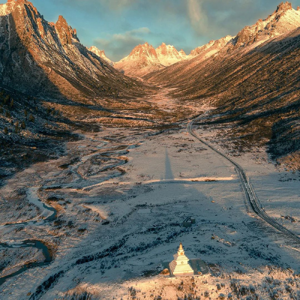 计划出行可以在当天的一大早就出发,下午到达达瓦更扎,幸运的话还能看到壮观的日落,火红色的日落烧红了远处的雪山,泛着红色的光芒☀