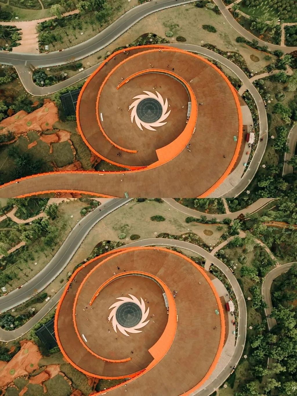 从空中俯瞰,好似一只眼睛,中间部分镶嵌太阳神鸟图案,如果航拍,造型简直不要太美!