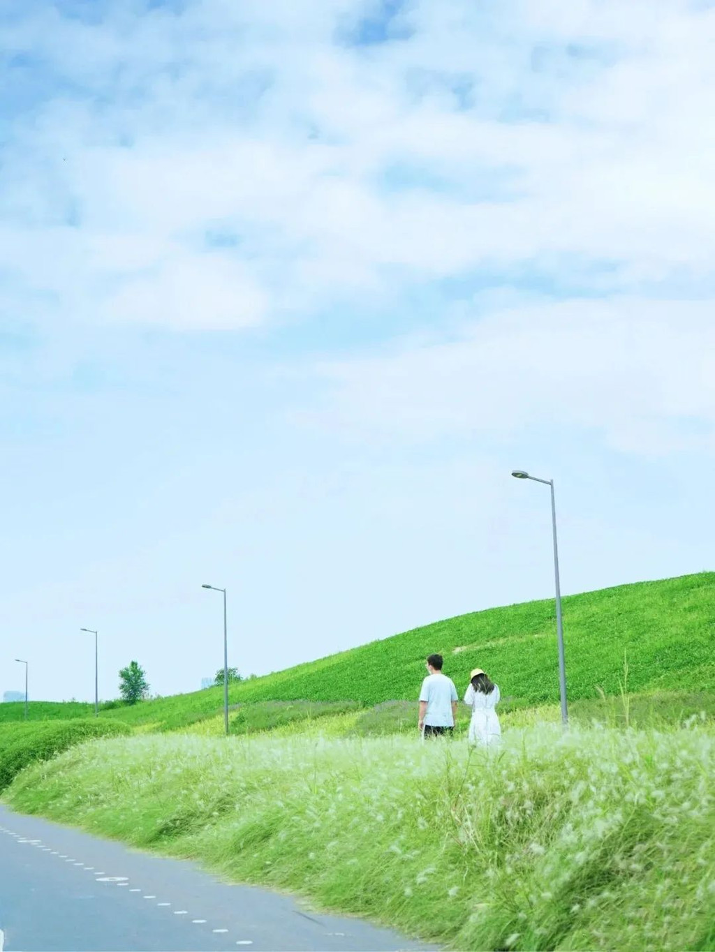 这里其实是一处城市绿化片区,两边草地环绕,还有小山坡,三三第一眼见到就想起了宫崎骏爷爷的作品——《起风了》