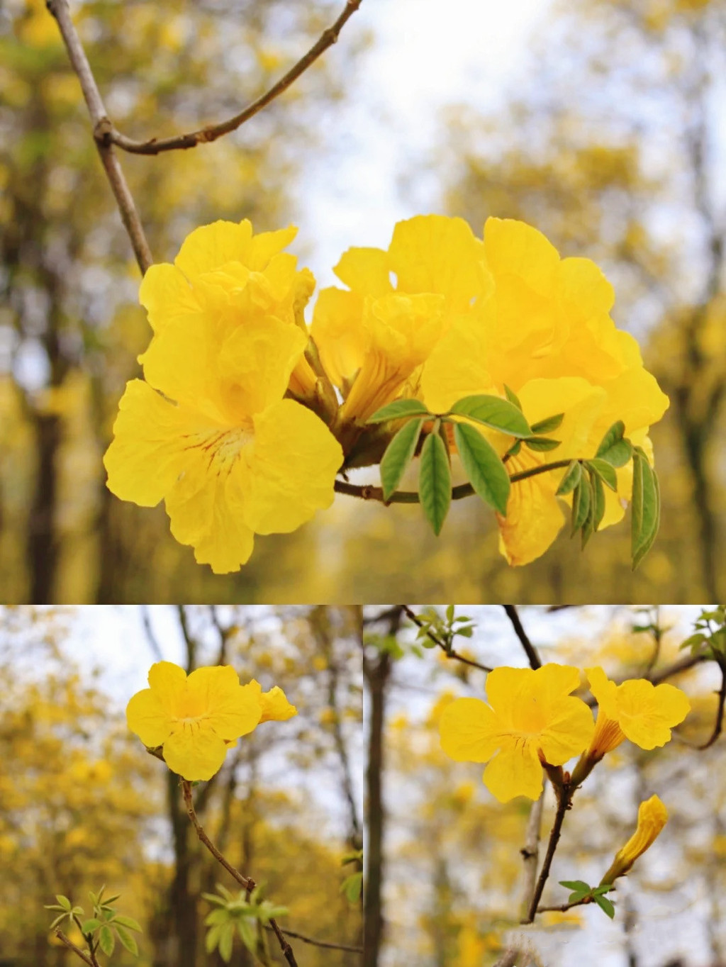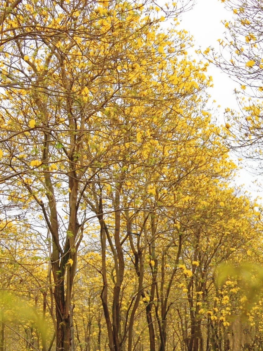春风浮动之时,黄花风铃与之轻轻撞碰,漫步林中,仿佛听见了清脆悦耳的风铃之声;