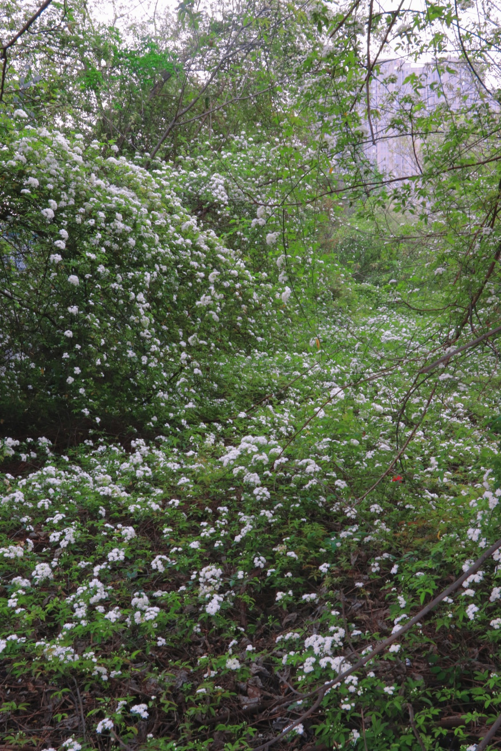 三三说这里是“花海”,那可真就一点也不带夸张的!白色小花一朵挨着一朵,茂密繁盛、成片成片的七里香覆盖在小河上;
