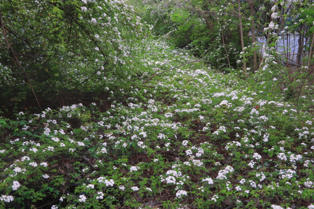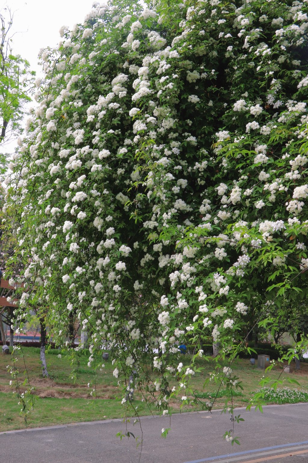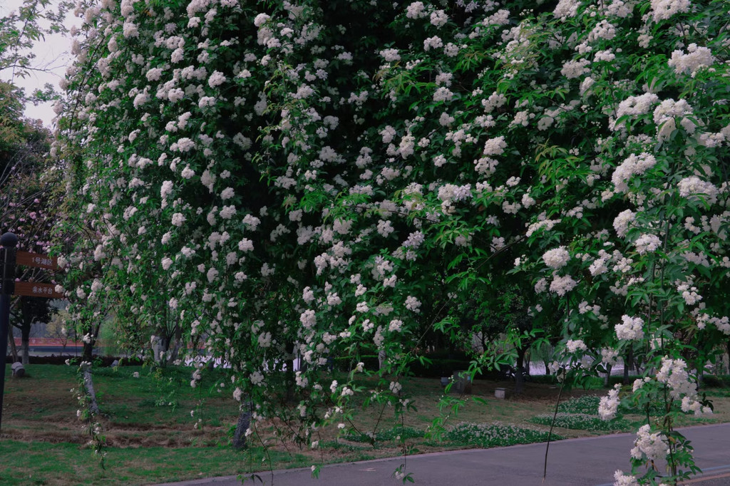 在这个春日,七里香如约而至,与别的点位不同的是,这里的七里香蔓延开来的面积非常大,甚至在地铁口打了个圈,站在足球场和网球场之间的桥上可拍到壮观画面。