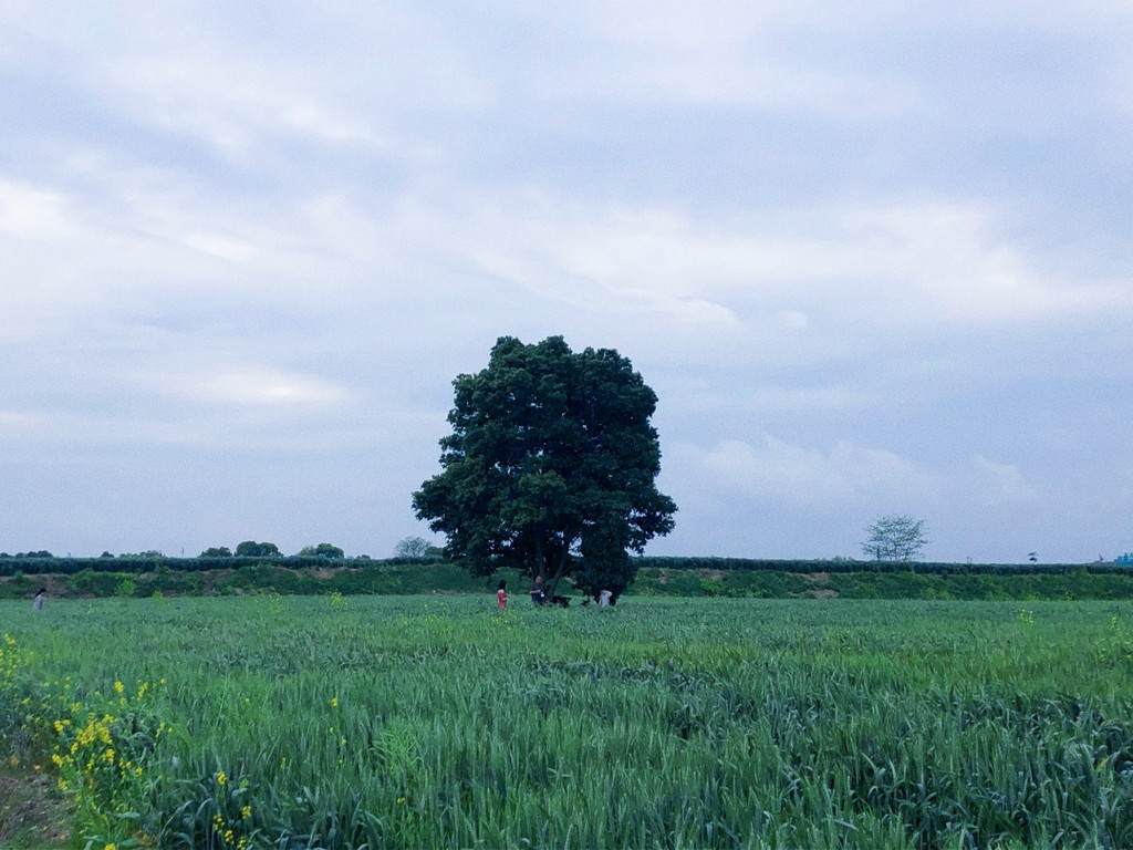 那棵在某书上爆火的树就在大片麦田之中,远远望去,伫立在此,特别有种孤独的感觉;