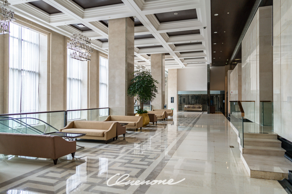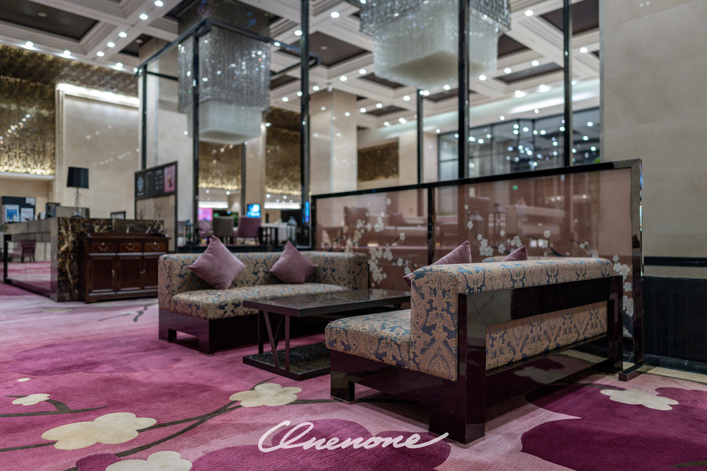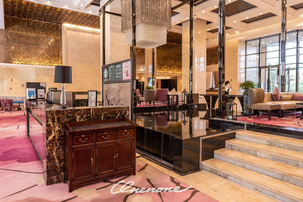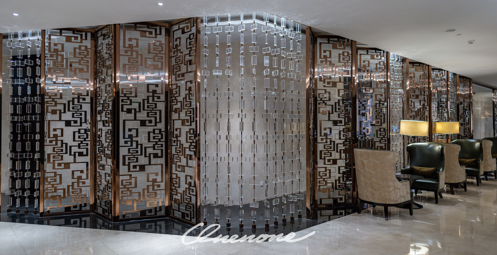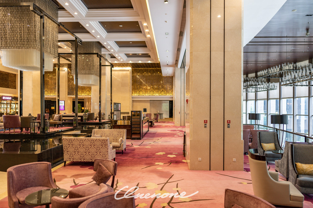 装修风格:酒店建筑外观朴素低调,进入大堂则内有乾坤,随处可见印有梅花图案的隔断和地毯。梅与松、竹并称为“岁寒三友”。梅以它高洁、坚强、谦虚的品格,给人以立志奋发的激励。金色的玻璃隔断不仅增强了内部空间的视觉延伸,同时营造出高端大气的商务氛围,浅紫色的地毯则显得端庄大方。一切装修设计的巧妙构思,都与酒店商旅出行的定位相得益彰。