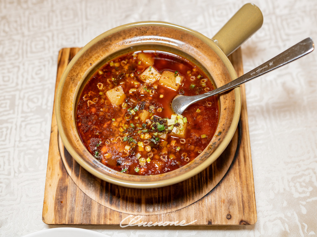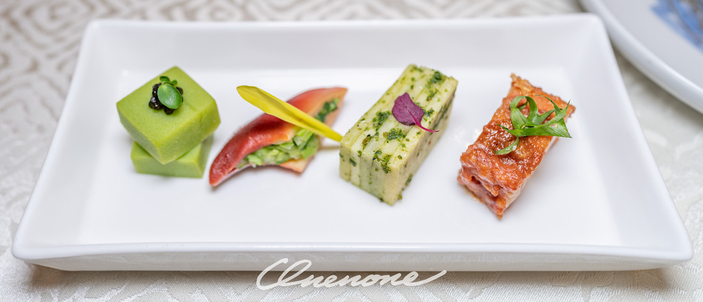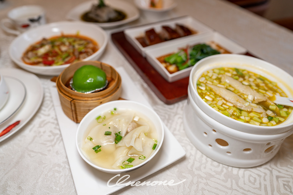 餐前水果、烧椒手工红薯凉粉、火腿春笋汤、火爆脆蛙肚、港式深井烧鹅拼白灼菜心、韭香酸辣小黄鱼、翡翠青团配清汤抄手。