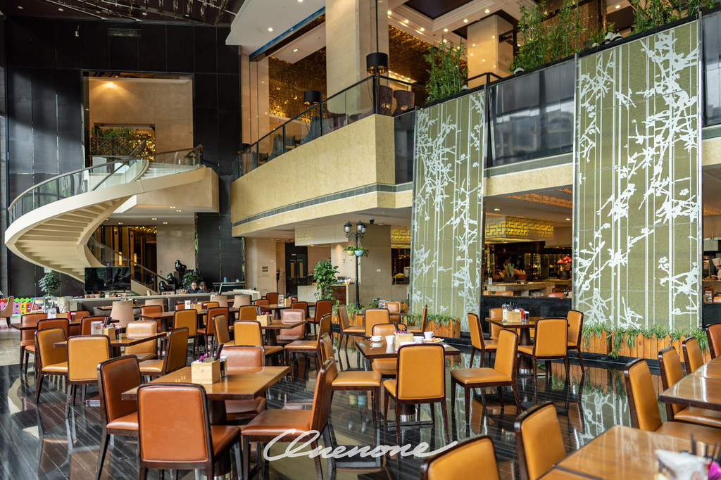 这次入住所有午餐和晚餐均在酒店二楼的颐都府中餐厅享用,餐厅精选冷链空运的原生态海鲜、本地河鲜等上等食材,主厨精通经典粤菜和地道川菜的烹饪制作,二楼的包间和一楼的雅座都是适宜商务宴请、家庭宴会的雅致之所。餐厅吊顶的透明玻璃灯和黄色琉璃灯都是优雅的鸽子造型,包厢的名字均取自宋词词牌:思佳客、惜芳菲、花前饮、醉思仙……寓意深远。