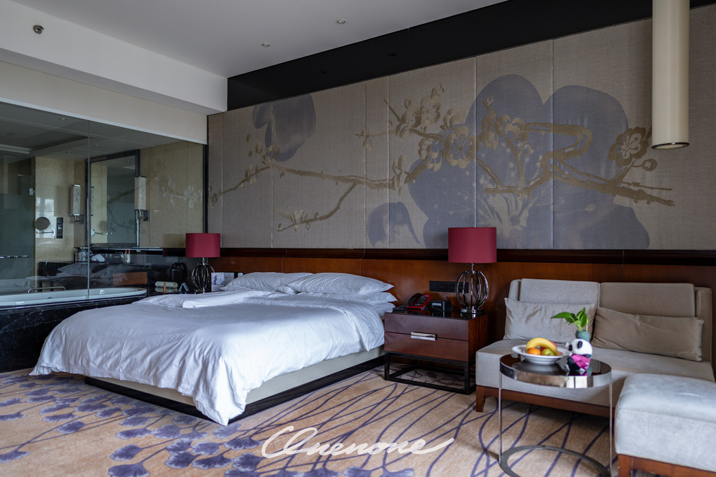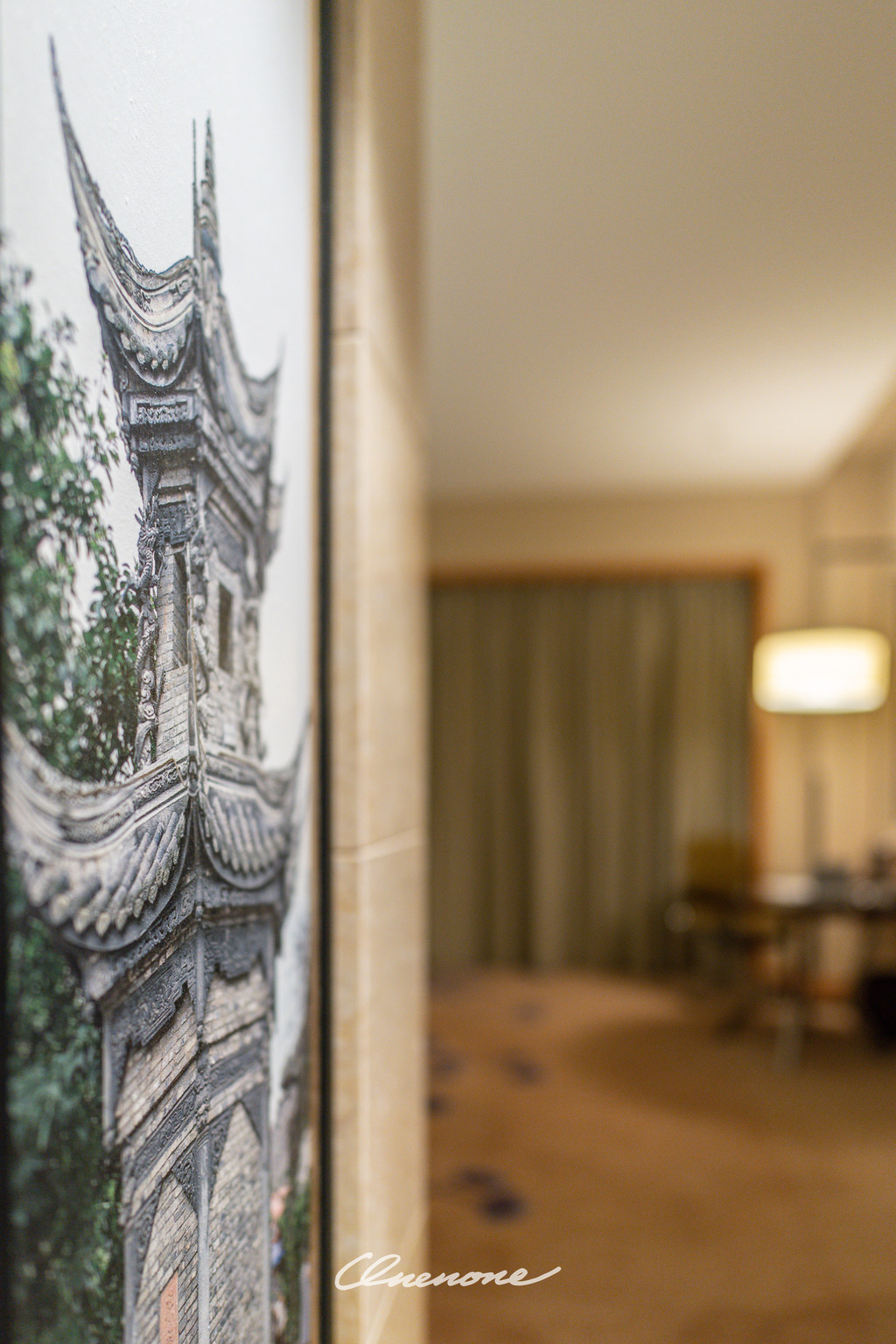 客房视野:酒店347间客房采用中式简约装修风格,这次入住的豪华大床房有着俯瞰高端住宅小区的园林景观视角。就算疫情原因,酒店负一楼的健身房、游泳池、SPA和户外花园暂未正常开放,我也可以凭栏远眺绿意盎然的春日景致。客房的梅花图案背景墙,银杏叶图案地毯,卫生间墙壁的梅花图案浮雕,走廊挂着的巨幅成都老建筑照片,细节之处,心思尽现。岂止是商旅居停,我感觉朋友相约出游或者举家度假出行,选择入住这家酒店也未尝不可。