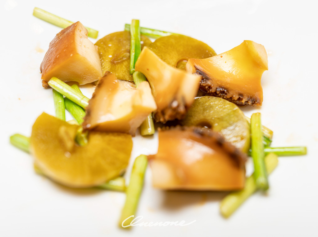 餐前水果、香椿脆皮鸡、马湖莼菜银鱼羹、香椿芽炒金钱鲍、仔姜河水蛙、蒜泥蔊菜、钟水饺。