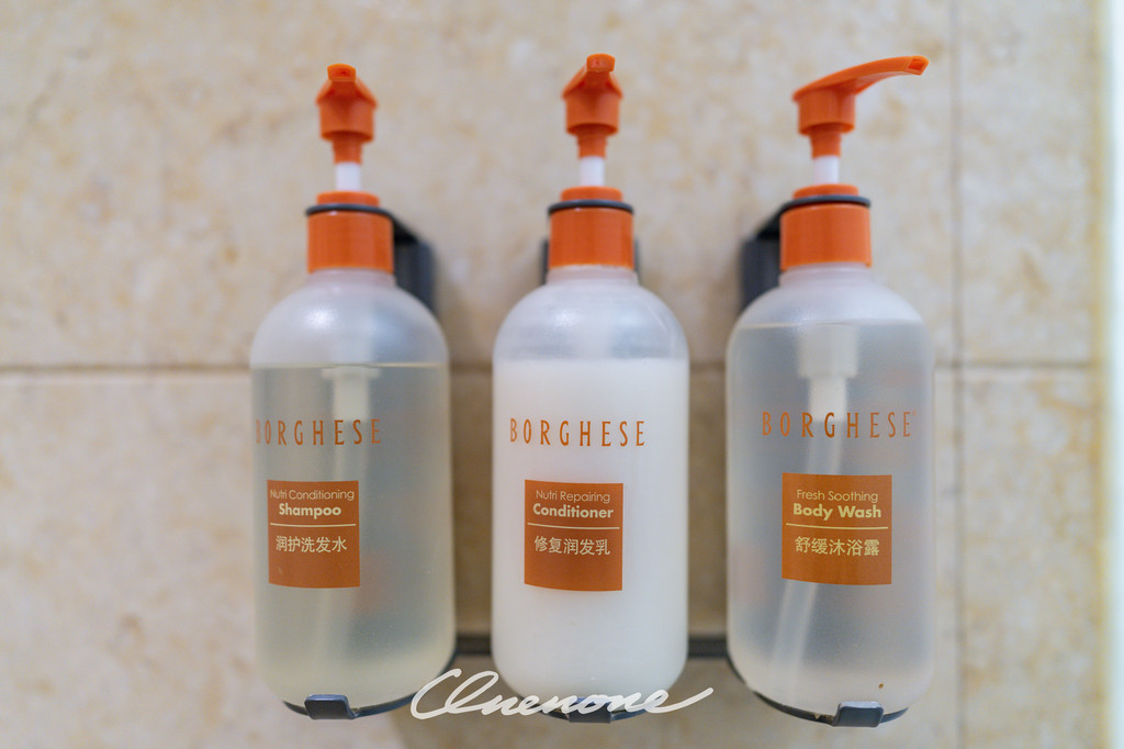 洗护备品:依然是皇冠假日酒店定制洗护备品品牌——贝佳斯Borghese,源自意大利矿物温泉,富含柑橘和柠檬精油,温和舒适,深层清洁头发、面部和身体肌肤。只是皇冠假日酒店已统一将小瓶30毫升旅行套装更换为更加环保的挤压式大瓶装,并且部分酒店减配了清洁皂和洁面乳。定制款的洗发水、护发素、沐浴露、润肤乳,真是很适合四川盆地这种温润潮湿的气候类型。贝佳斯犹如喷涌的泉水,为肌肤注入无尽的活力,这就是我的真实体验。