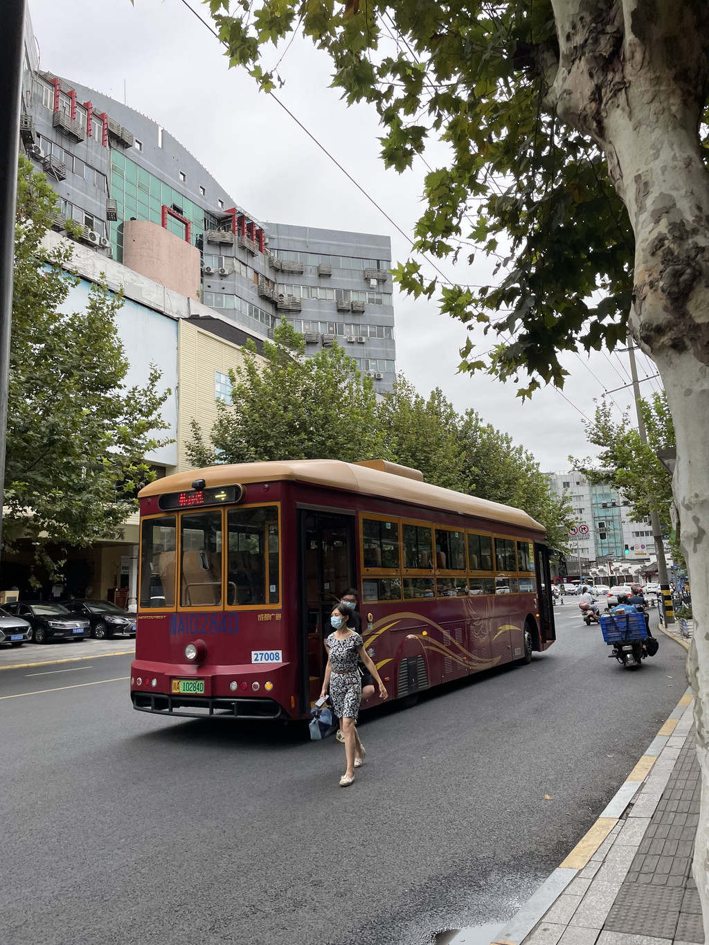 一路上看看成都的样子,高架上的公交车站,十几层高的阳台上种着好大一棵树,还有各种特色的公交车