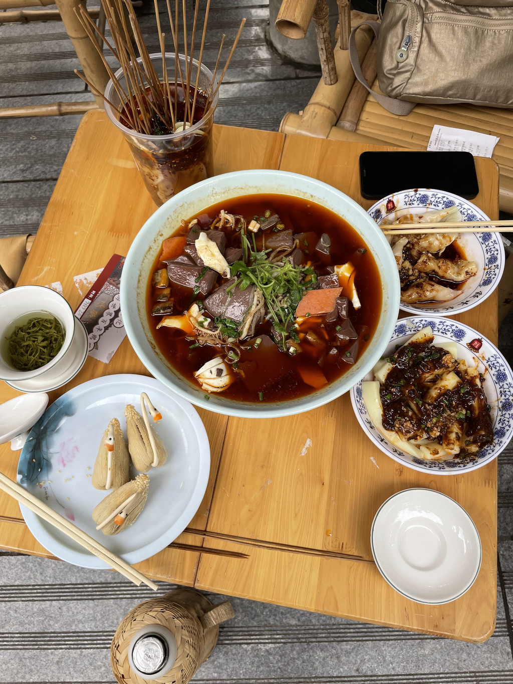 品茶的前菜,是大口吃起来,别人来品茶,我俩是先来吃饱,再品茶