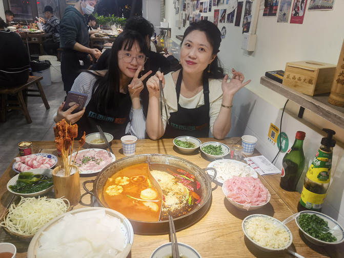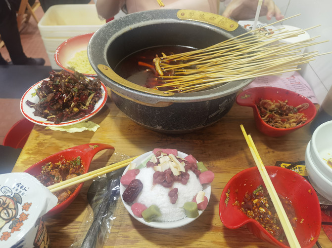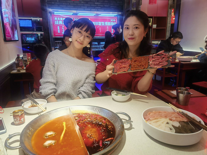 放完行李,我们就去楼下的小龙坎吃了第一顿火锅。真的,成都的空气里都弥漫着火锅的香味。这里的小龙坎锅底确实是和上海不一样,辣锅好吃多了,而且吃完之后身上头发上没有火锅味道(那是因为纯正牛油,没有添加剂的原因),第二天也不会肚子痛拉稀什么的。