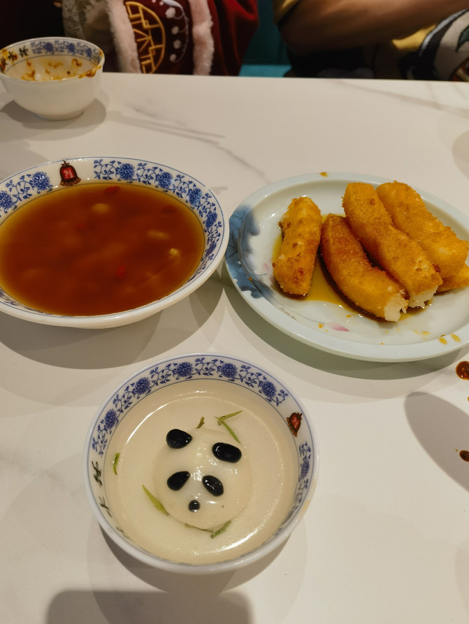 人民公园喝早茶,钟水饺、鹤鸣茶室坐坐。下午人民公园很多人,我们上午去的话还好,钟水饺点的餐也可以拿出来在喝茶的地方吃,没有想到最难看的甜水面居然最好吃,红糖糍粑也不错,熊猫汤圆是一只一只卖的,皮比较厚。盖碗茶是按位收费的,价格不贵,点一杯十几元的茶喝喝。