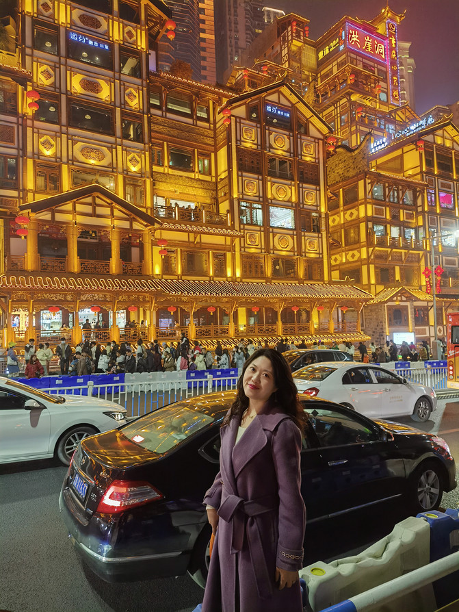 如果不进去洪崖洞里面,只拍外观的话,那就直接打车到下面,一辆车四个人也就只有10块钱。