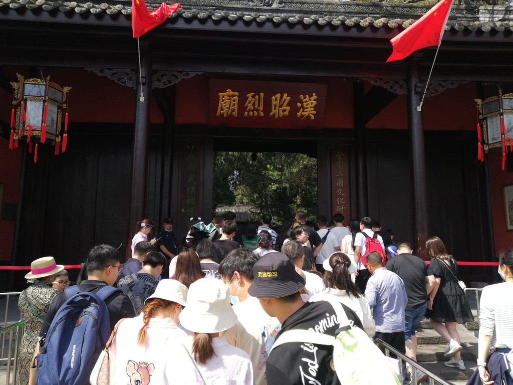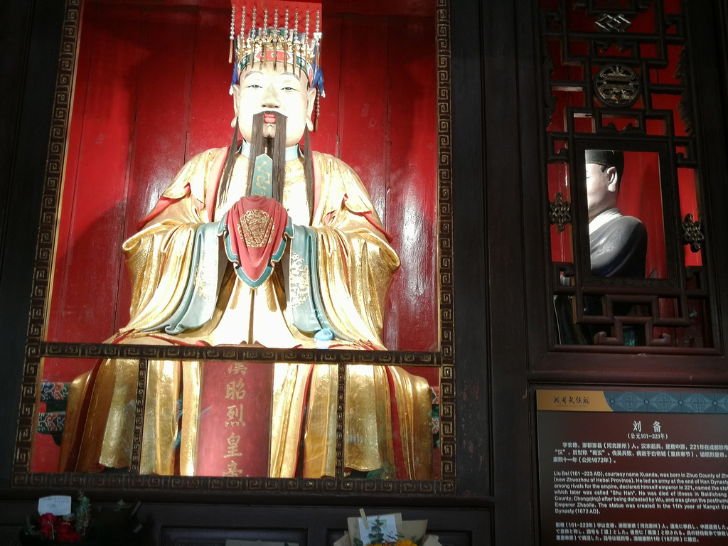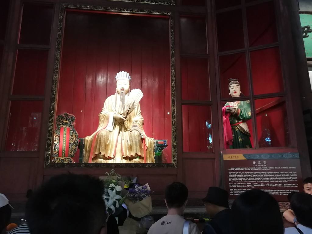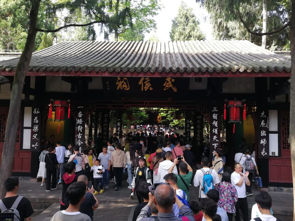 出了熊猫基地的西门乘坐景区直通车到达宽窄巷子,换乘锦城观光公交到达今天的第二站武侯祠。高中时背过杜甫的诗《蜀相》描绘的正是这里,喜欢三国文化的人当然不能错过这个景点。进入景区大门同样要排队,但和熊猫产房比起来就是小意思了。武侯祠的隔壁就是成都集吃喝玩乐于一体的锦里步行街,在武侯祠参观了两个多小时出来后是下午五点多,此时的成都大约要到晚八点天才能黑下来。对我来说,晚间漫步在灯火通明的街市上别有一番滋味,所以打算先不急于逛锦里。