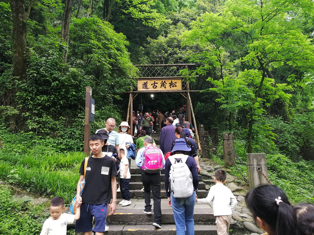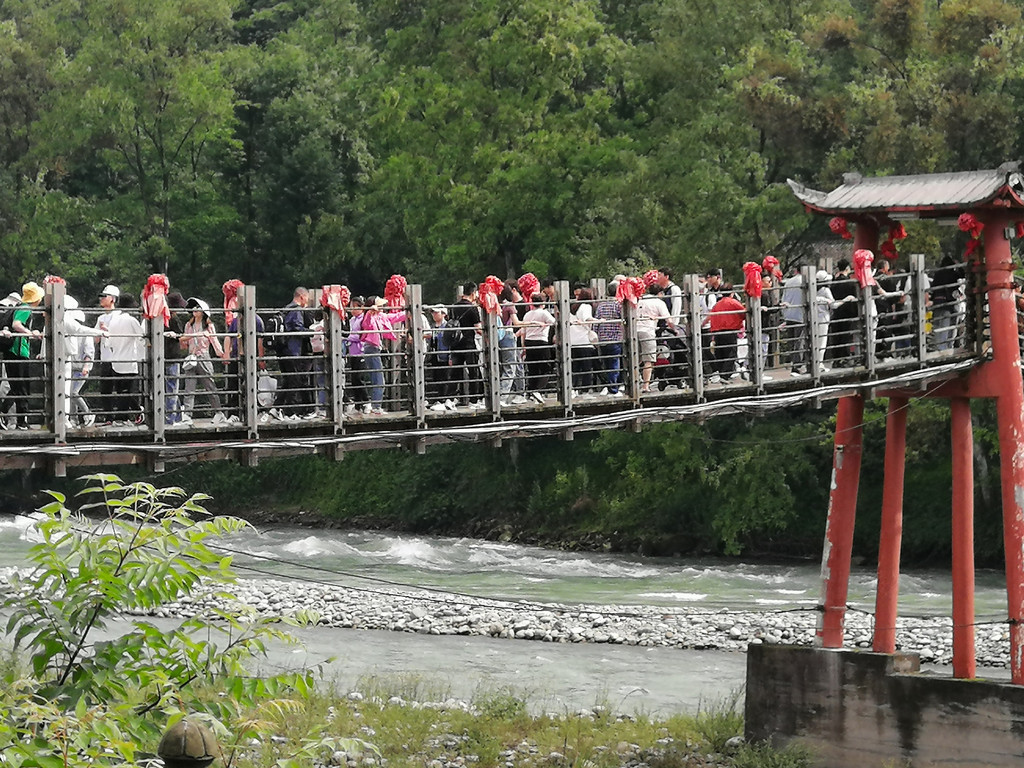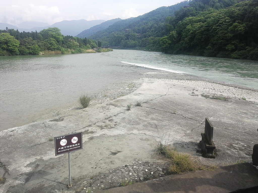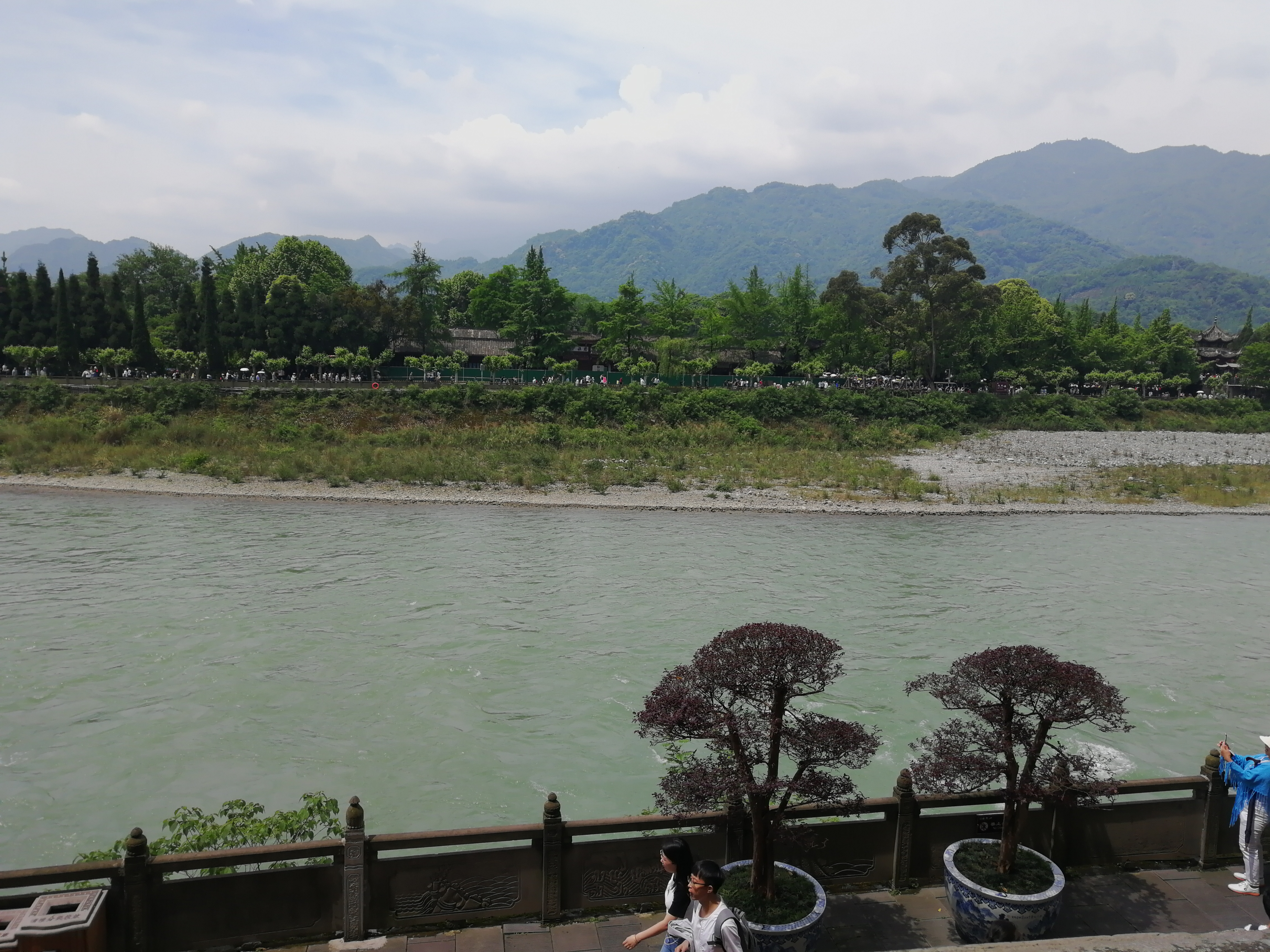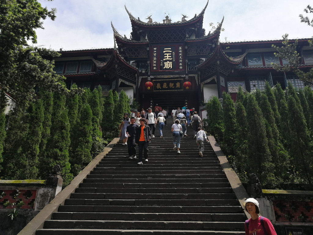 离堆公园站是离都江堰景区最近的高铁站,但仍有一段很长的路要走,还要经过一条类似锦里宽窄巷子的仿古商业街,那是上午9点左右,很多商铺还没有营业,穿过南桥就是都江堰的入口处了。都江堰景区有好几个出入口,我是从离堆公园的入口进去,经过伏龙观到达核心部分(宝瓶口、飞沙堰和鱼嘴),跨越安澜索桥到达另一侧的玉垒山,爬到半山腰处的二王庙,再经松茂古道和城隍庙到达玉垒山的出口。其中安澜索桥那里排了半个多小时才上去,景区的最高处秦堰楼由于不顺路就没有去,总共游览时间为三个半小时。