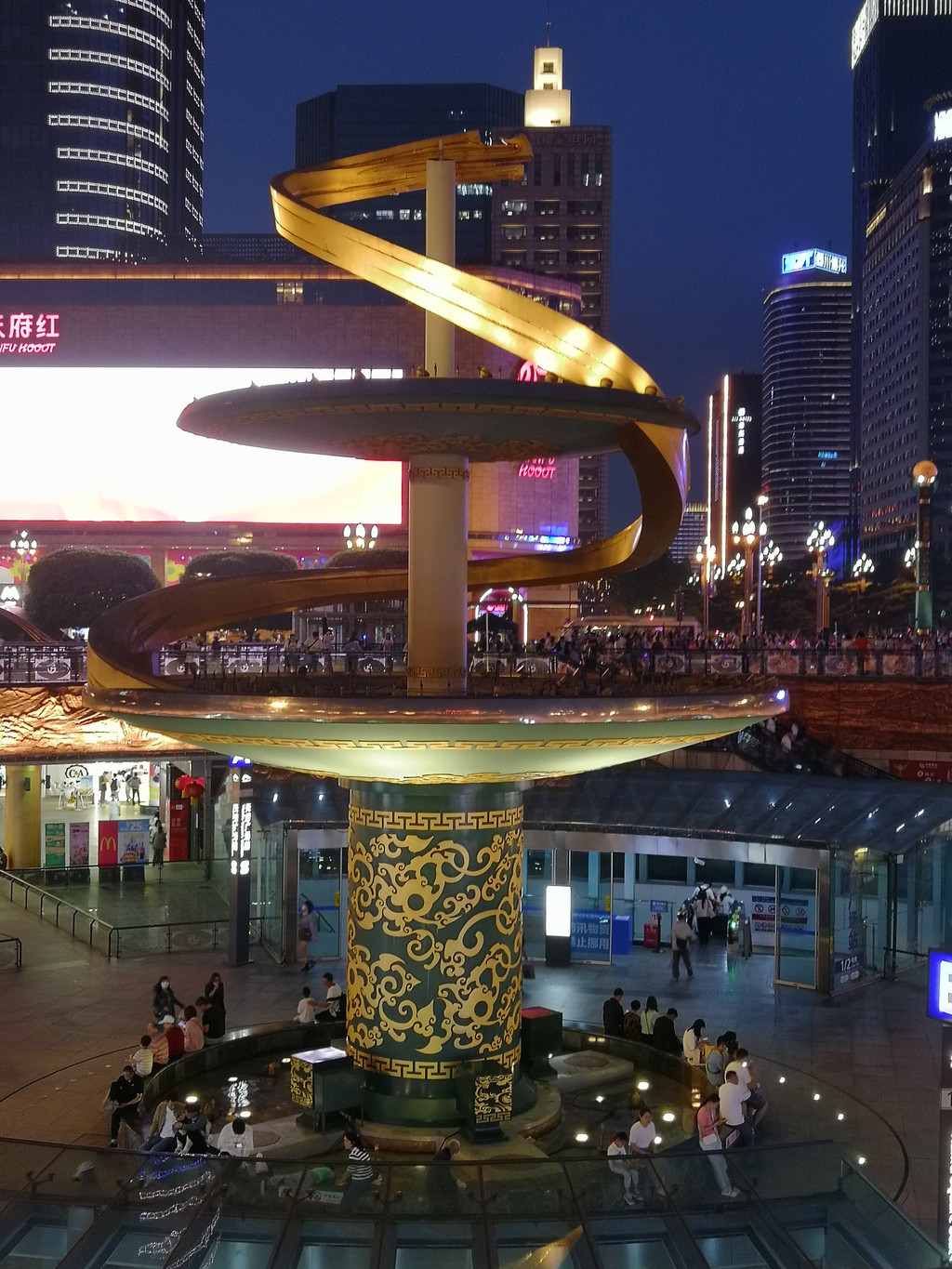 春熙路是成都最为繁华的一条商业街,就像天津的滨江道一样。在此我本着随意逛的心态,能逛多少算多少,而不像前两天逛锦里宽窄巷子那样必须要走完每一条街道,也没有再刻意等到天黑。逛完春熙路又来到位于市中心的天府广场,在此看到的太阳神鸟雕塑正是源自本次旅程中最后一个要去的景点。