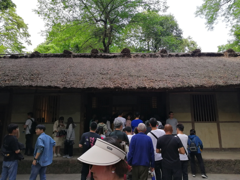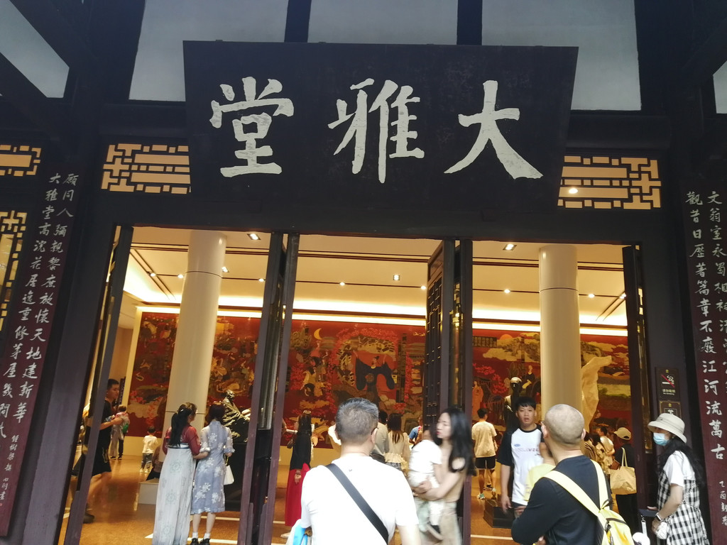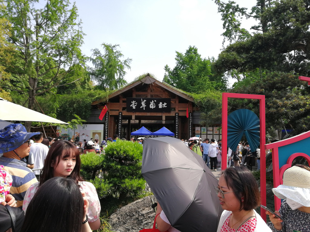 参观整个动物园花了4小时10分钟。从动物园出来在门口的德克士吃了午饭并休息了一个多小时后,乘地铁转公交来到杜甫草堂,这里仍然排了很久的队才进去。杜甫草堂这个景点除了后来建造的茅屋和一处小型遗址外,更像是一座大公园。这天气温很高,园内植被茂盛逛起来还是很舒适的。还是因为体力原因,基本每看到一处亭子都要坐下来歇歇脚,当然也是为了消磨时间以便天黑后再去逛宽窄巷子。