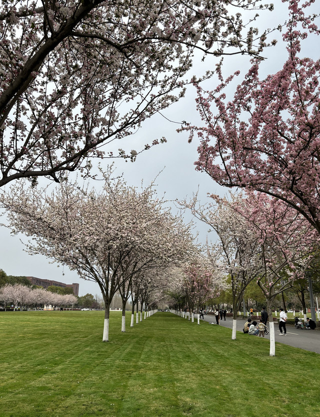 门口有很多共享单车,我们果断扫码骑行。校园很大,我们从图书馆、教学楼看到宿舍生活区。校园里的樱花开了,很漂亮;昔日风光的土木工程学院,还有当下热门的人工智能学院(还开了2个!)。走在路上看到好多大学生,感慨一下时间过去太快,我们两个“老人”混在校园情侣中拉拉手,假装年轻一下。生活区特别有烟火气,女生宿舍边飘浮着洗衣粉的味道;一进商业街/食堂,就是记忆中的“气味”,混杂着食物、油烟的腻腻味道。