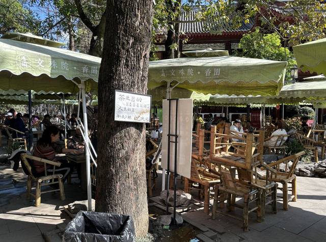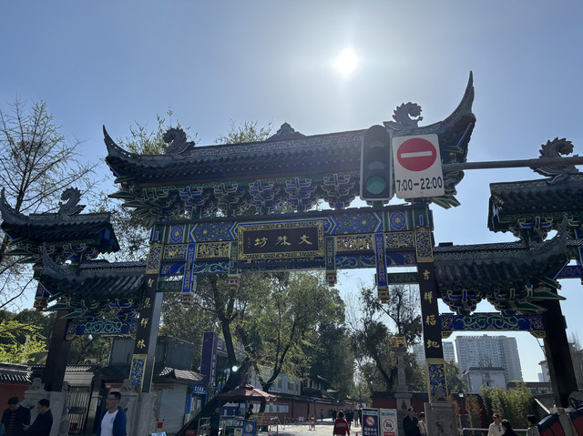 前两天早起,今天就睡到自然醒了(毕竟带娃的时候很难睡懒觉)。睡到8点半,先下楼吃早饭,然后收拾行李,退房,把行李寄存在前台,我们就打车去文殊院了~文殊院是成都市内保存最为完整的佛教寺庙之一,来这里祈福的信众也很多。我们在门口的牌坊打卡拍照,通往寺庙的街上有采耳朵的大姐,她热情地叫我,我好想去试一试噢!但赶时间就没去了(好可惜!)古街小巷很有味道,竹椅摆摆可以喝茶聊天~