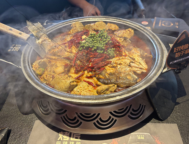 走到烤匠不远,已经有很多人在等位了,我们还没轮到,先把羽绒外套脱了塞行李箱里(成都很热20几度,街上短袖都很多)我又画了会画,就轮到我们了。我们两个都不太能吃辣,但是超哥说麻辣味的才好吃,就妥协了,20几分钟上了锅,没吃两口我就被辣翻了[哭脸]花椒很多,不会吃辣的我吃到后面嘴巴苦苦的,好像嘴唇在震动一般!只好加了些微辣的烧烤,还有红糖麻糍(不知道为啥麻糍吃下去也很辣)超哥一直吃烤鱼,比我好点的样子,嘴巴也红红的。服务员可能看我被辣得太厉害,送了我一支花椒雪糕(问号?)...最后两个人带着一身烤鱼味道(我的白色新卫衣第一次穿就溅上油点子),捂着有点痛的胃出门了[笑哭]