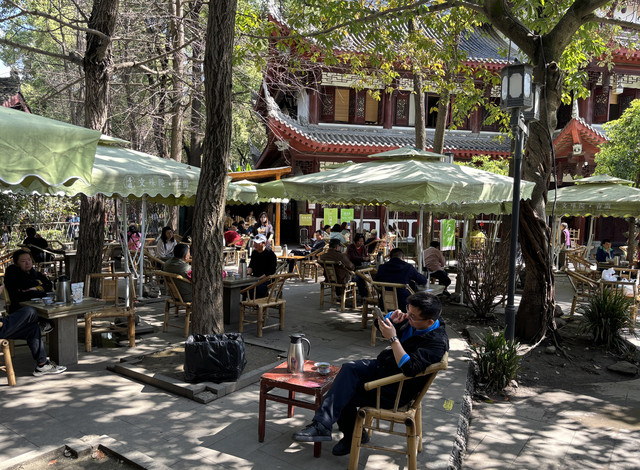 文殊院免费送香、谢绝带香,我们虔诚地在大雄宝殿上了香~殿门口的铜门上有个大大福字,很多人都排队去摸,我也排上了队,一会就轮到我了——我在内心许下了祈福的心愿,然后摸了三遍福字。寺庙虽然人多,但是大家都谦让、井然有序,逛完内心十分宁静、喜悦。文殊院旁边就是茶馆,第一次见识到了四川人的喝茶文化。暖暖的太阳晒晒,和朋友喝茶聊天,抽抽烟,十分地惬意。