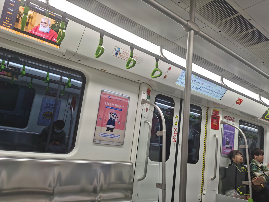 图2.52:地铁车厢内有各种造型的大熊猫标识呢