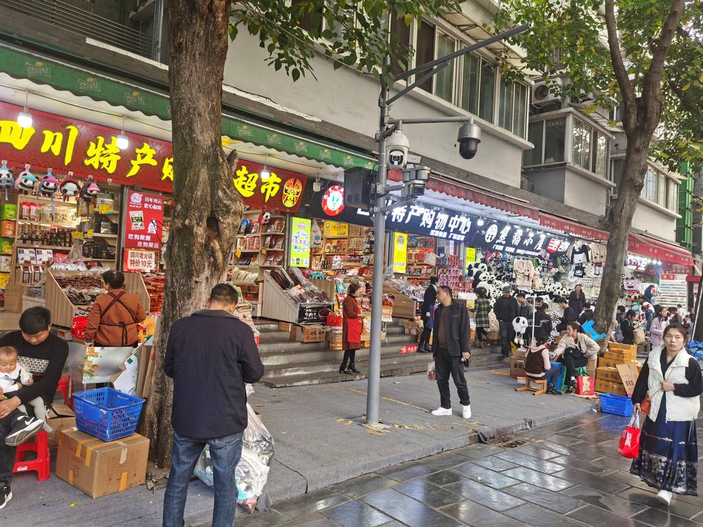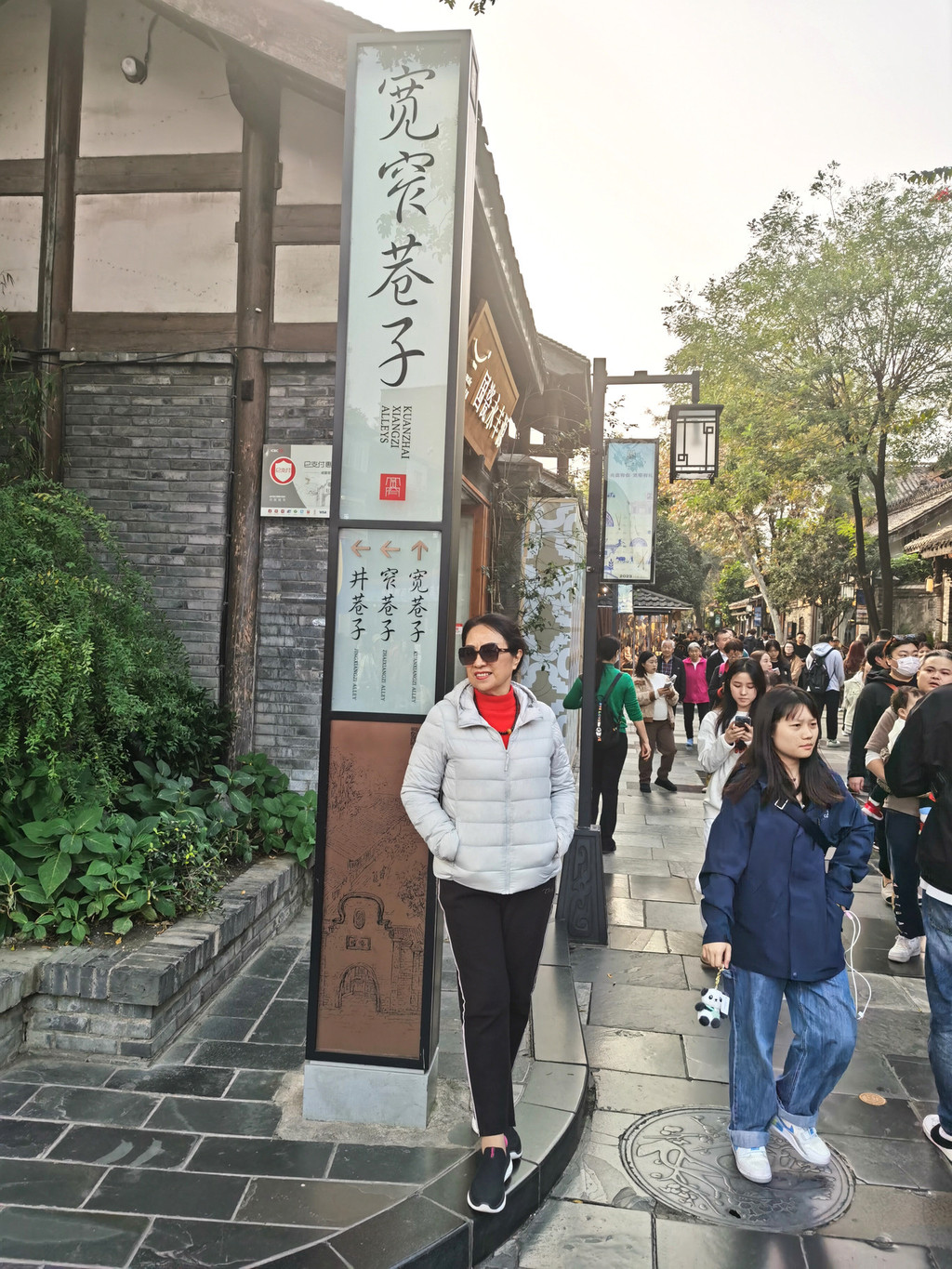 随后,我又造访了宽窄巷子。它位于成都市青羊区长顺街附近,由宽巷子、窄巷子、井巷子平行排列组成,皆为青黛砖瓦的仿古四合院落,这里也亦是成都遗留下来的较成规模的清代古街道。