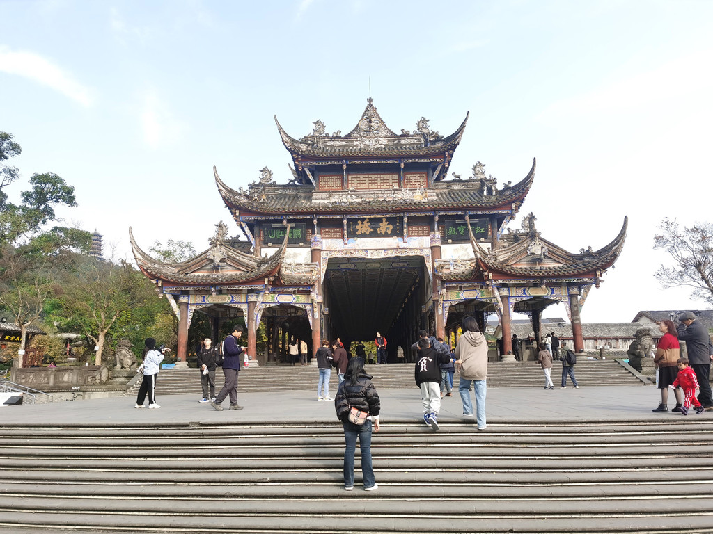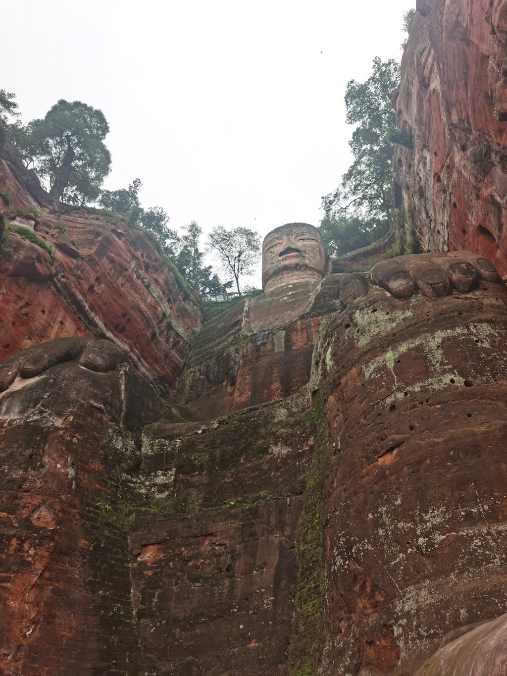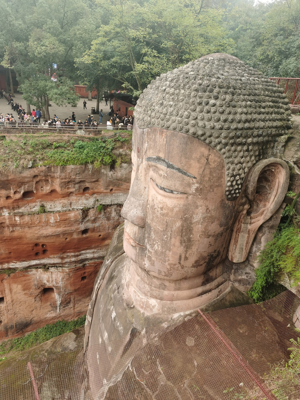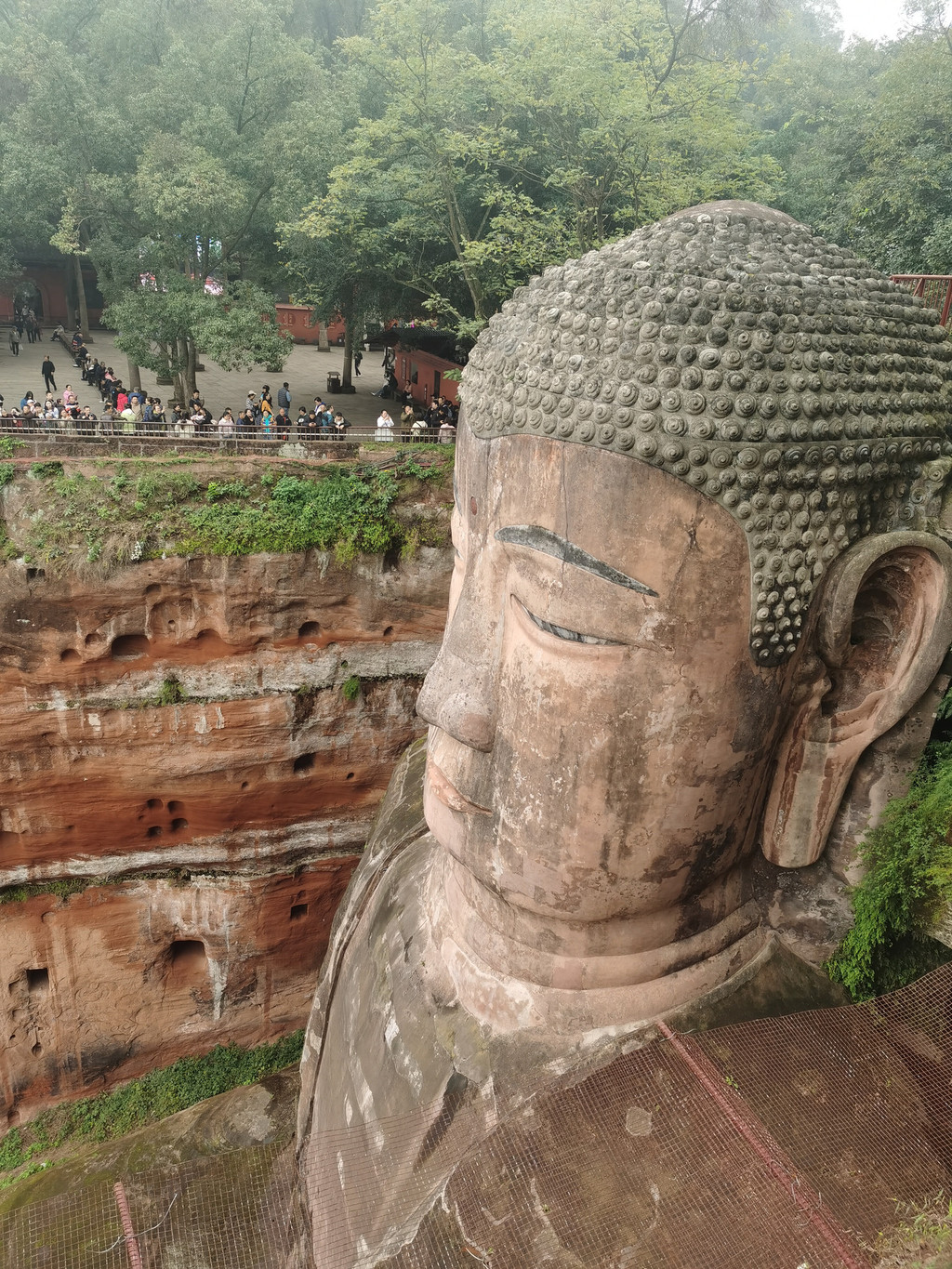 第二日的主要行程,为拜访四川省乐山市知名的乐山大佛。乐山大佛头与山齐,头高14.7米、宽10米,发髻1051个,耳长7米,依山凿成临江危坐,神势肃穆,大气磅礴。大佛左右两侧沿江的崖壁上,有两尊超过16米的护法天王像。大佛右侧有着一条九曲古栈道,乃唐代开凿大佛时留下的施工和礼佛山道,沿绝壁开凿而成,曲折九转,奇陡无比。