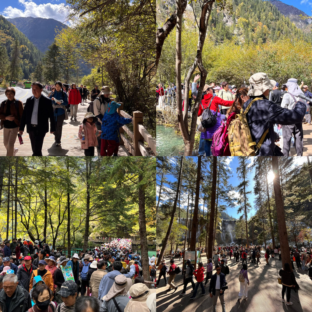 说真,一天都在惊叹中呀!惊叹祖国的大好河山,大自然的鬼斧神工,中国最宽的瀑布#诺日朗瀑布,好像很多珍珠滚下去的珍珠滩,看似没有任何杂质清澈见底的各种海,九寨归来不看水,都说水清则无鱼,还是有鱼的哈哈,还有那庞大的客流量,每天三四万的人流,络绎不绝的旅游大巴啊!