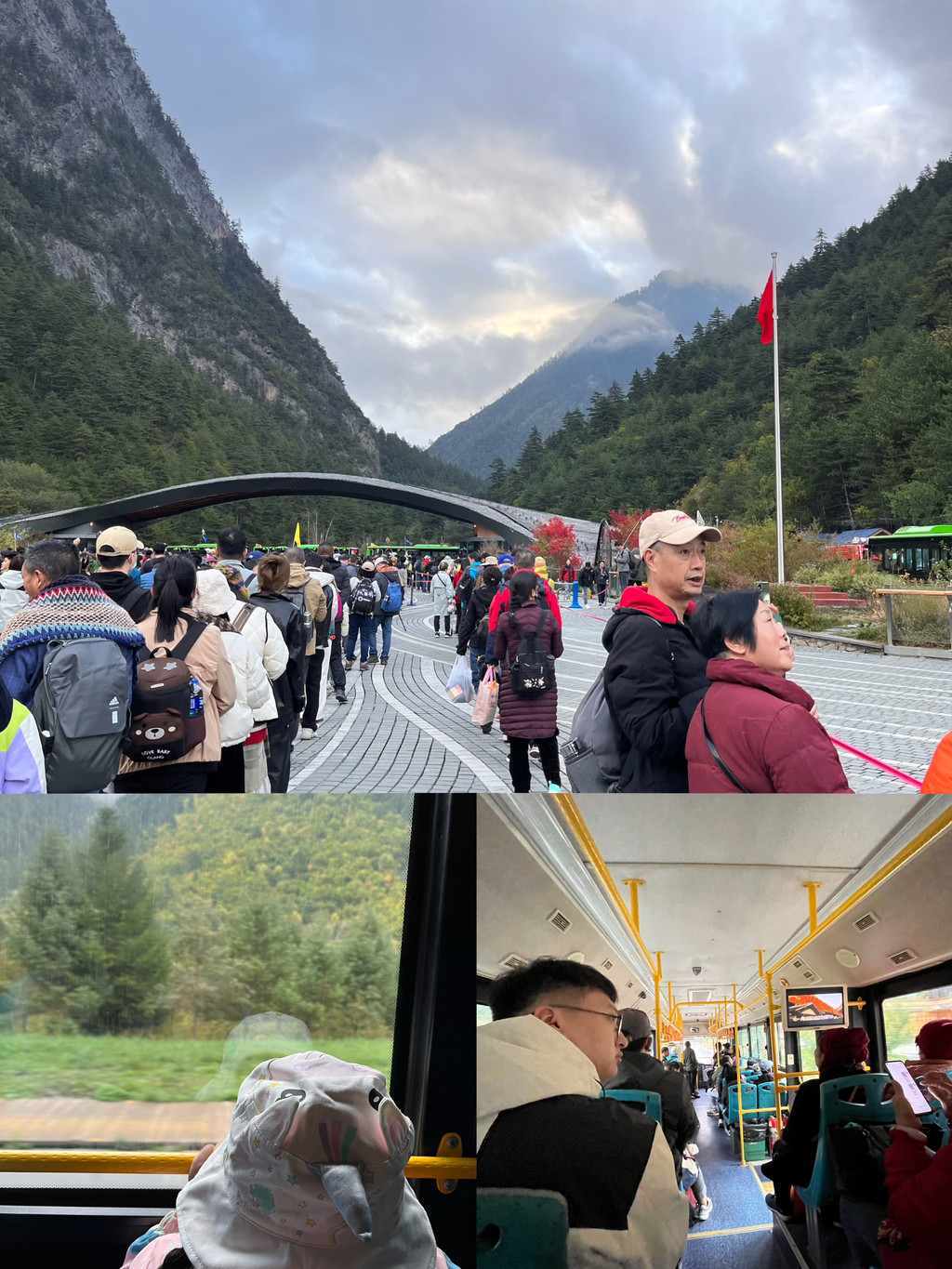 听说九寨沟的调度能力很强,确实门口排队到上车很快,一定要找个座位,有位置才上车,进去还挺远的。