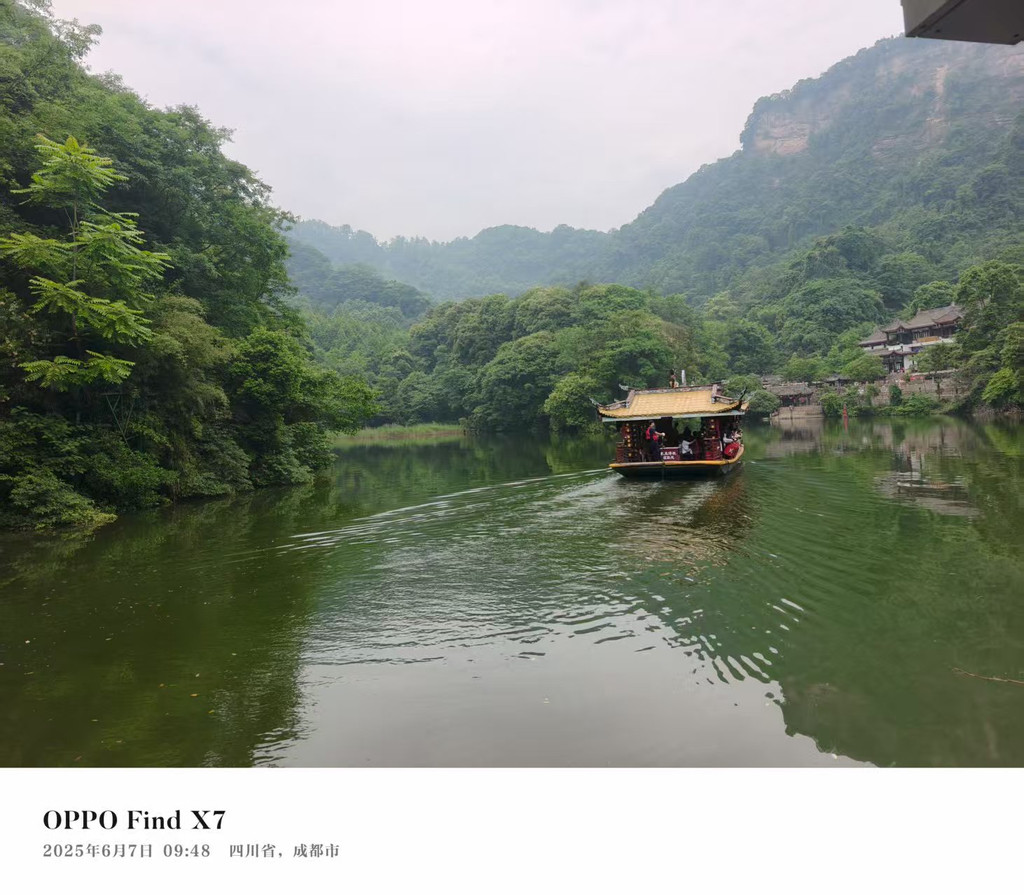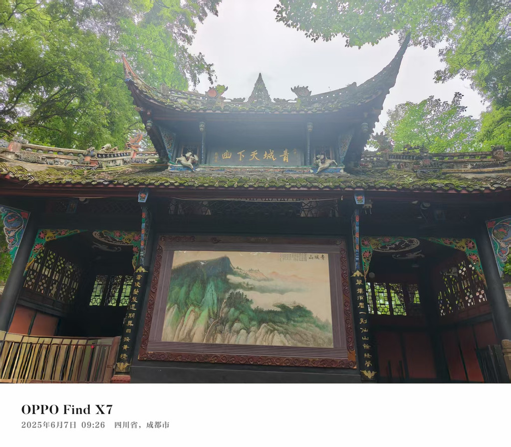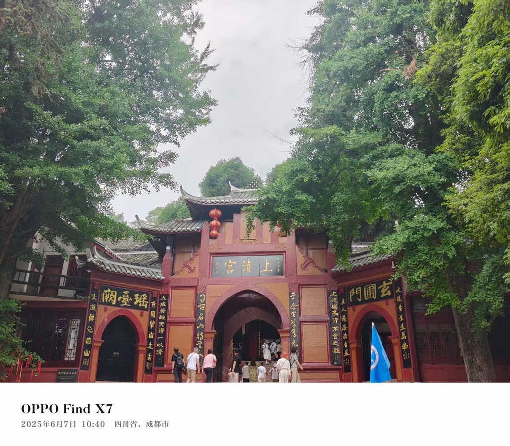 青城山门外和门里是两个世界,门外拍照打卡,排队进门,还有晨练的当地人。门里空气含氧量极高,空气湿度大,幽静异常,比门外要底5、6度。青城山不高,可以选择坐往返观光车和索道,月城湖上有渡船,自愿选择乘坐。青城山里有很多西游记取景地,有兴趣的可以同位置打卡。我们是在悟空拜师学艺的地方拍了照。