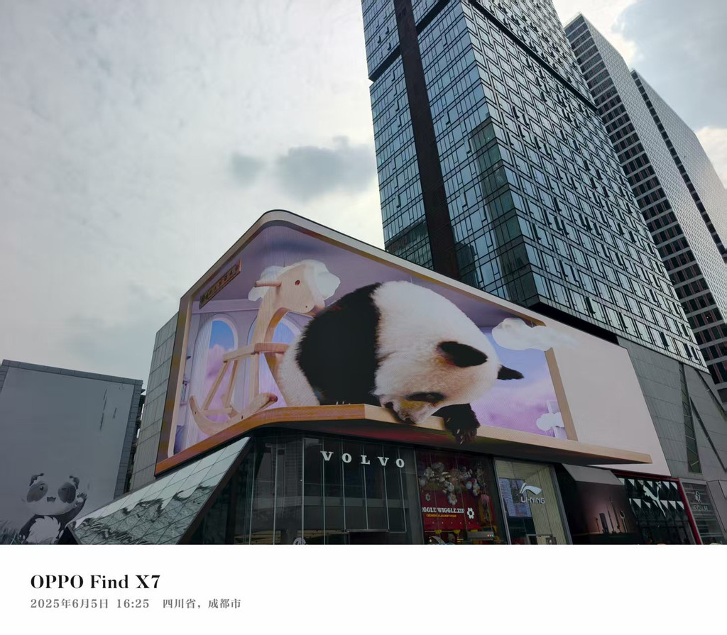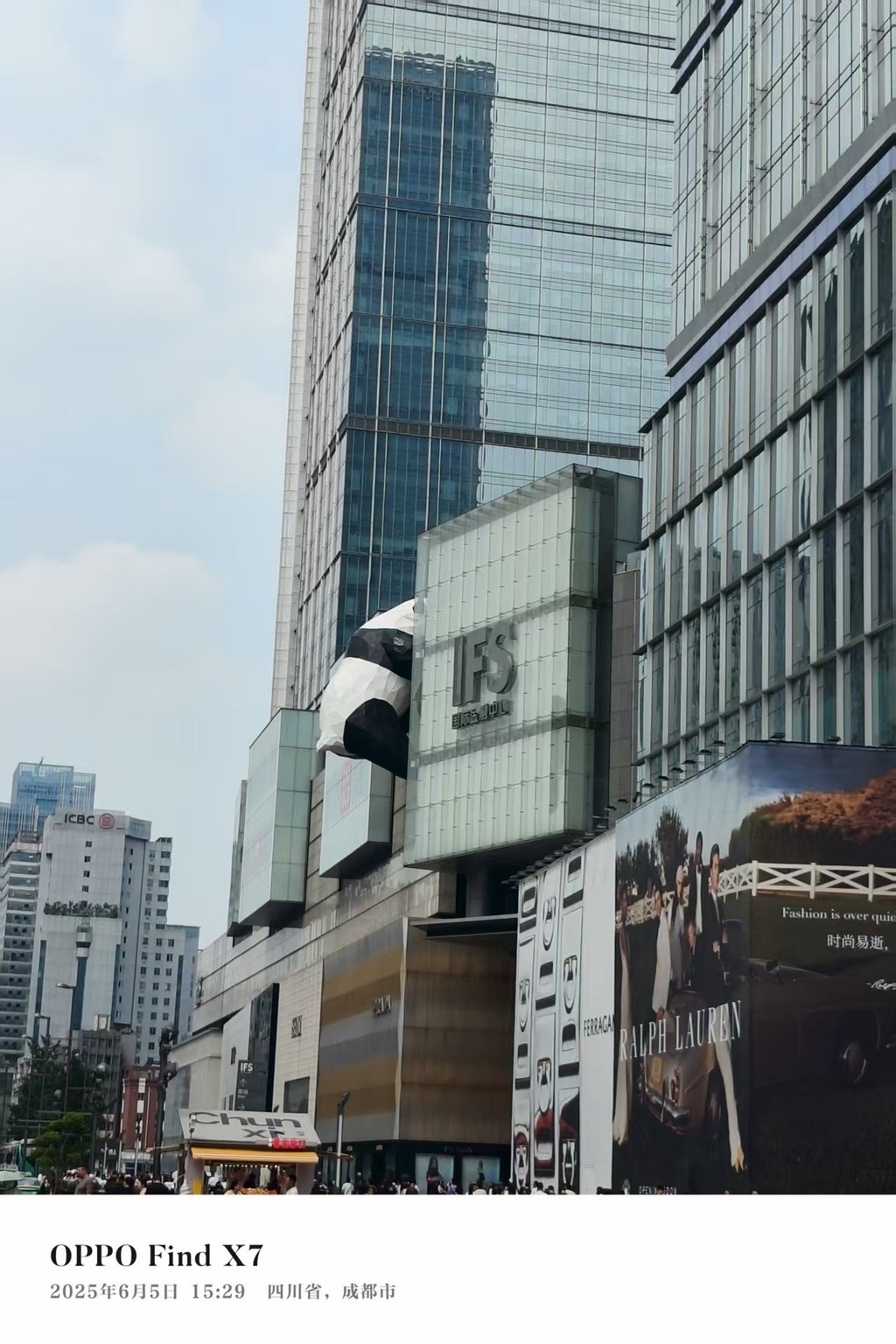 春熙路,下午人不是很多,没有想象中的人山人海,3D裸眼大屏和爬墙熊猫像在一个直角三角形的两条直角边上,不远。