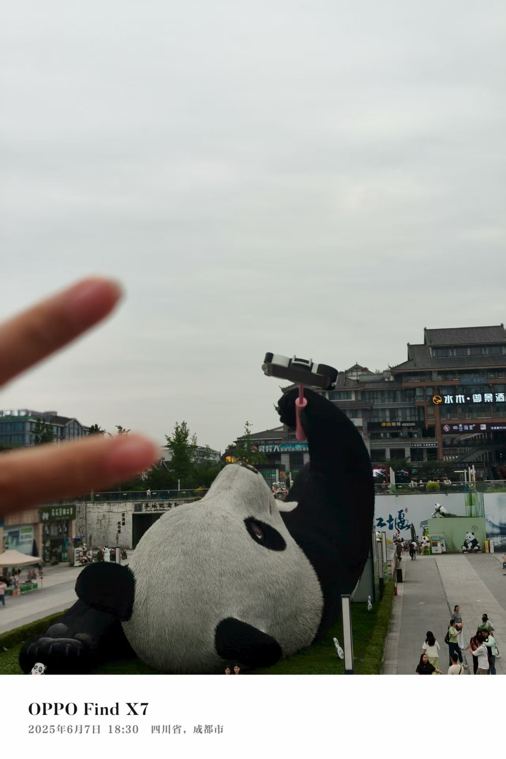 机场坐地铁直接到春熙路,非常方便。出了地铁口一扭头就看到了爬墙大熊猫,遂不及防的成都气息迎面扑来。过条马路就到了民宿。
