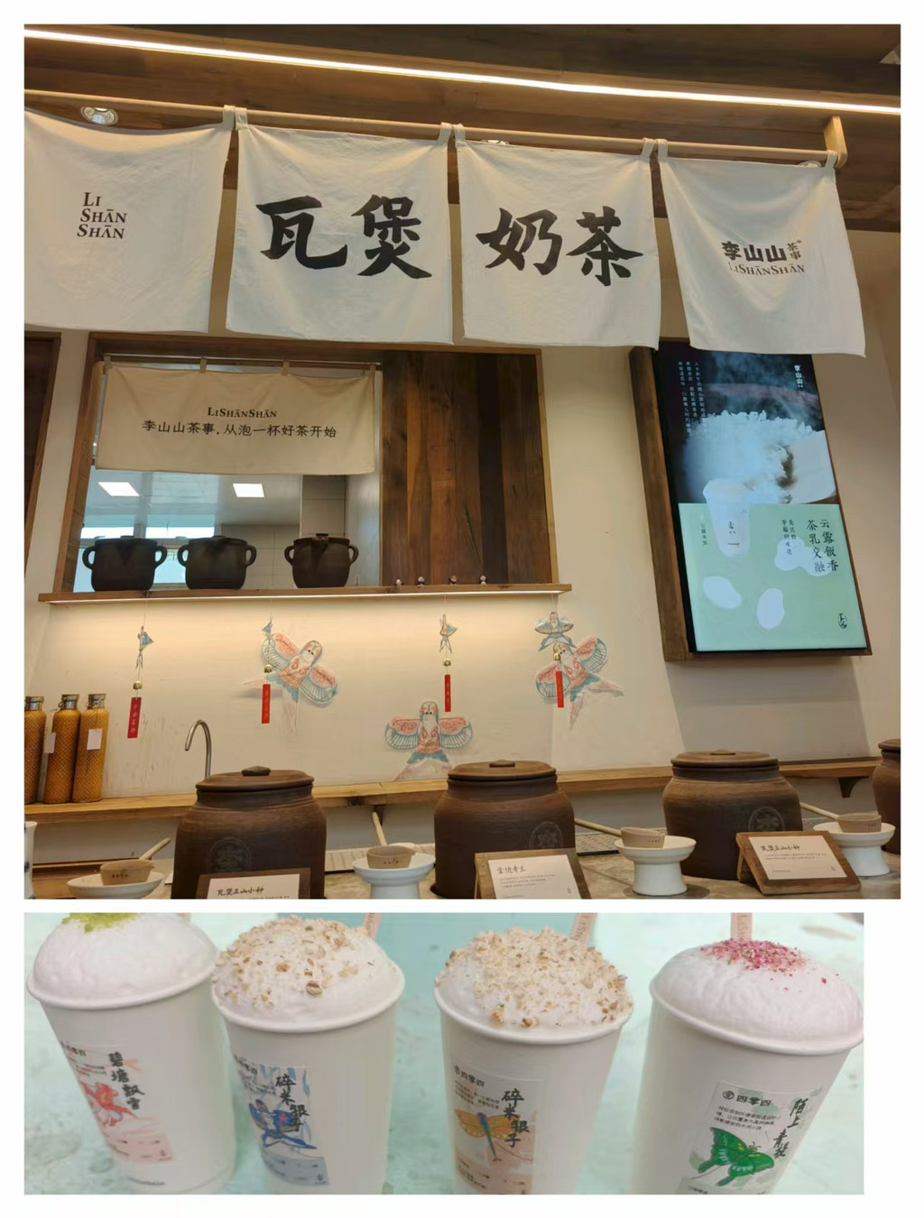 下午在楼下买了SL老妈兔头做伴手礼放到了我们的小冰箱里保鲜,又每人来了一杯成都必喝瓦煲奶茶李山山,碎米银子是招牌,有股米香,更多的是茶香,口味比较淡。每一款奶茶都有个很好听的名字,又根据喜欢的名字(第一次看名字意境点奶茶)点了陌上青提和碧塘飘雪,味道都不错。接下来就是重头戏了,芙蓉国粹。