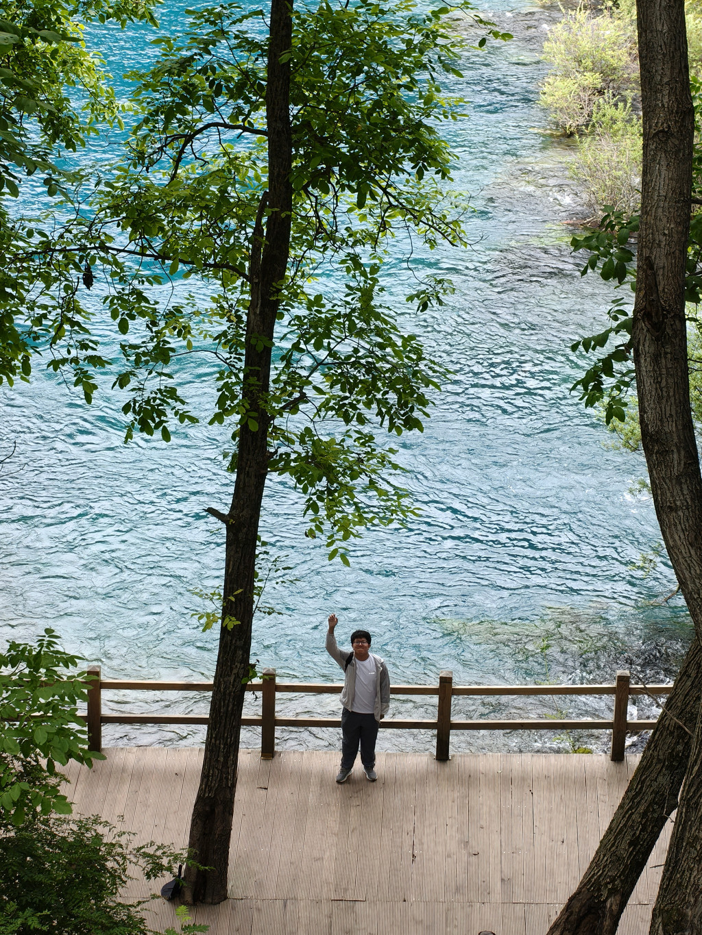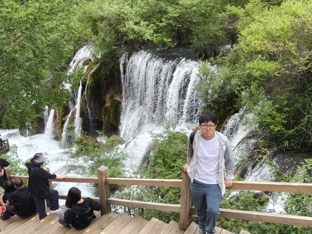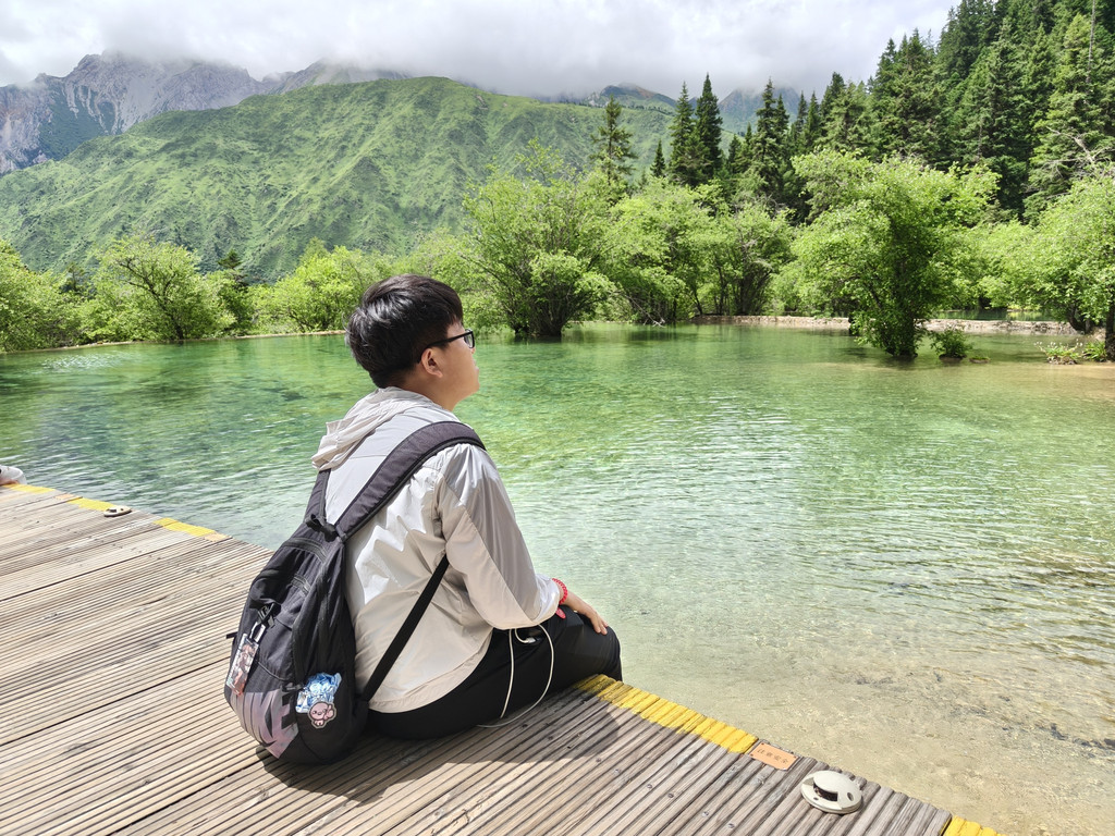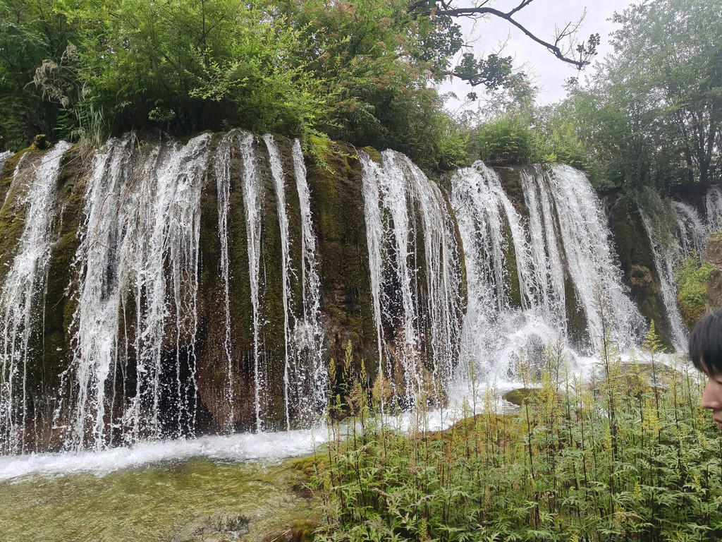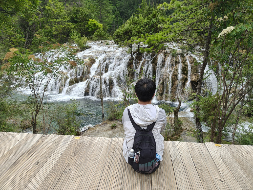 早上7点多出来吃早餐,然后会酒店办理退房,步行15分钟,8点多就到了九寨沟景区大门,一楼有行李寄存柜,20寸的行李箱选中柜,一天10元。然后到二楼排队入园,九寨沟不愧是著名的5A级景区,管理和观光车调度非常有序,一广场的人,排队非常快。验身份证入园,直接排队上观光车(建议坐在左侧,可以在车上看蓝色的海子)。到诺日朗中心站之后,我们的这辆车被分配到了原始森林这条线路,我和儿子在箭竹海下的车,然后乘车到熊猫海,步行至五花海和珍珠滩瀑布,再坐车到诺日朗中心吃午饭。之后坐车到长海,步行到五彩池(九寨沟最美的海子),坐车到诺日朗中心,步行到诺日朗瀑布,坐车到犀牛海,步行到树正瀑布,远眺树正群海,步行到双龙海瀑布,下午3点半坐车到景区大门,乘景区直通车达到松潘高铁站,回到成都已经晚上9点半,乘坐地铁到酒店休息。在九寨沟景区游玩不到8小时,放弃了原始森林、芦苇海、树正寨等景点。开始的时候拍照还记录一下到的是什么海,后来就忘了,现在来看照片,已经记不起来都是哪儿了,九寨沟的海子长得都挺像的,就五彩池不太一样,美的比较特殊。