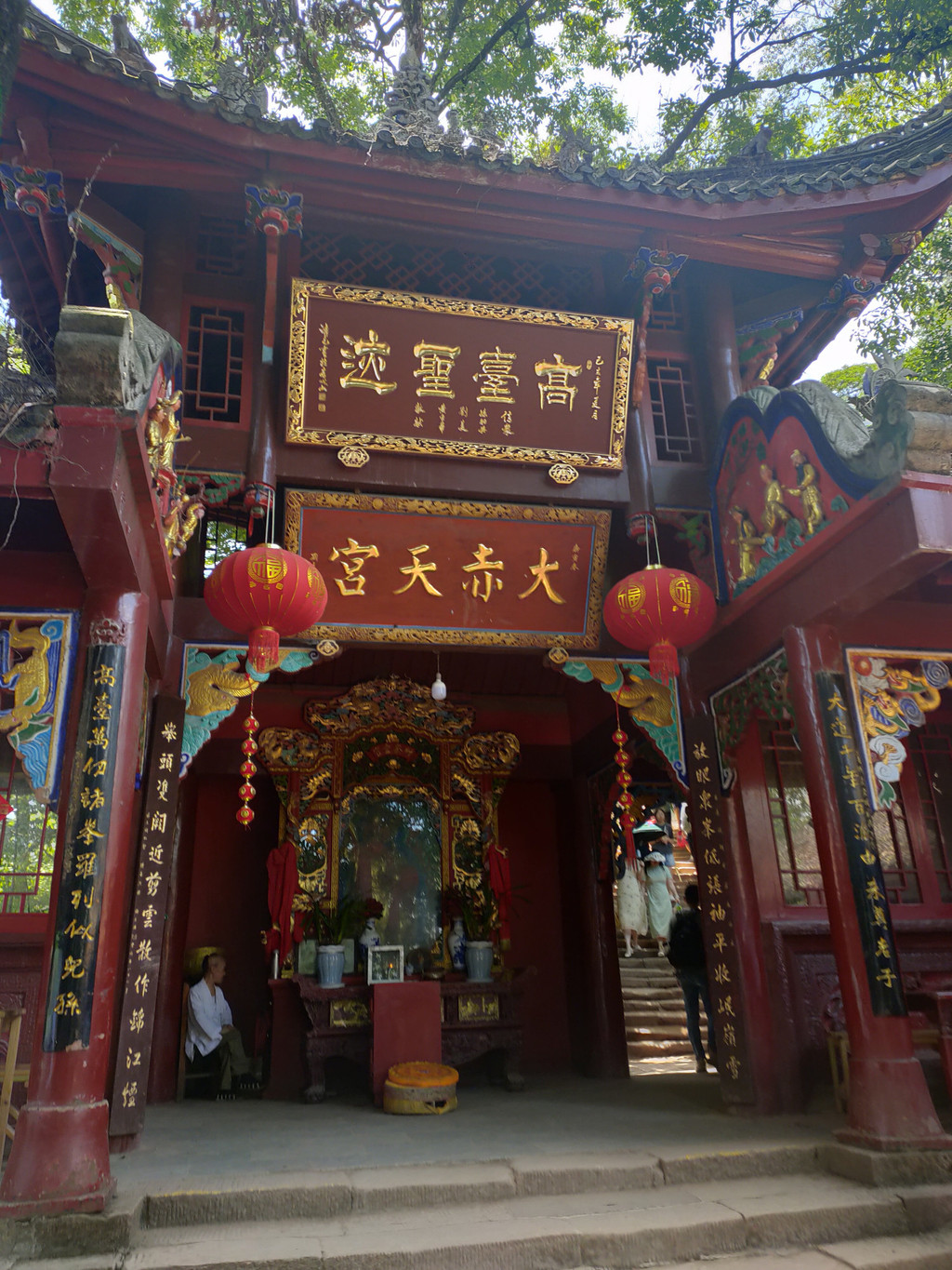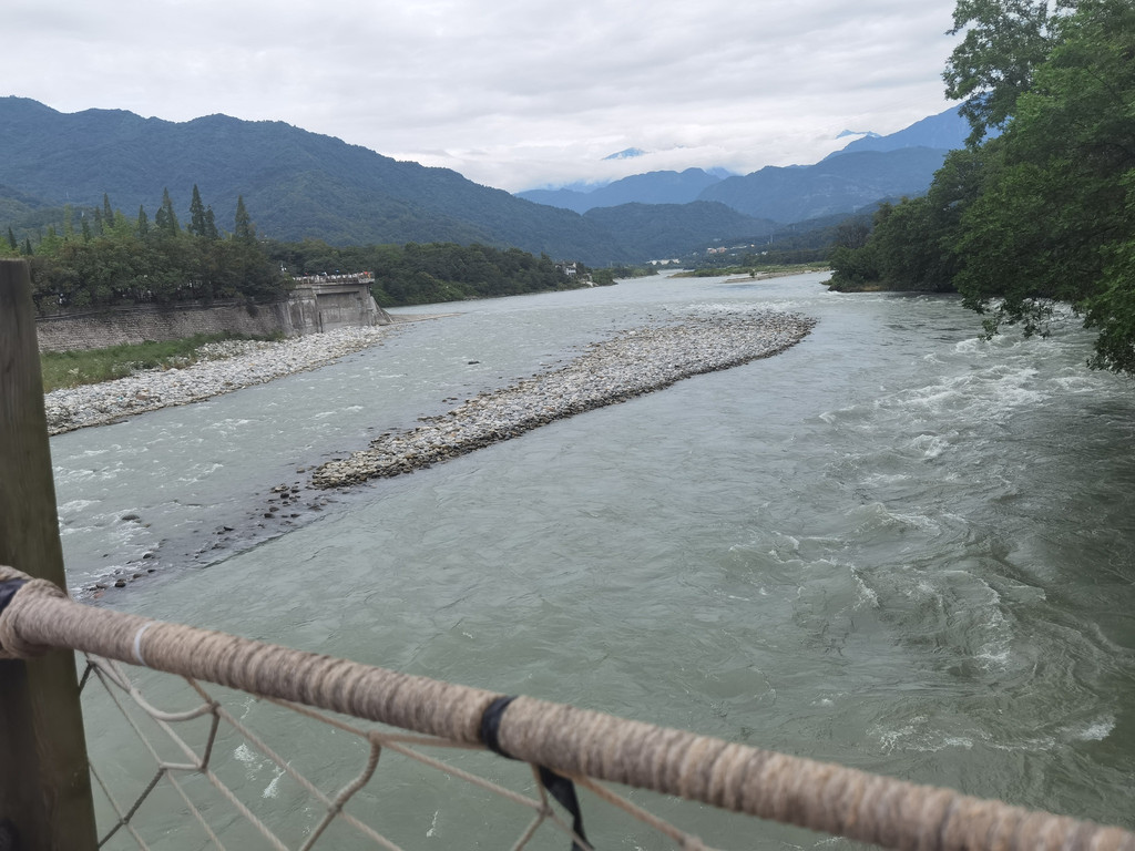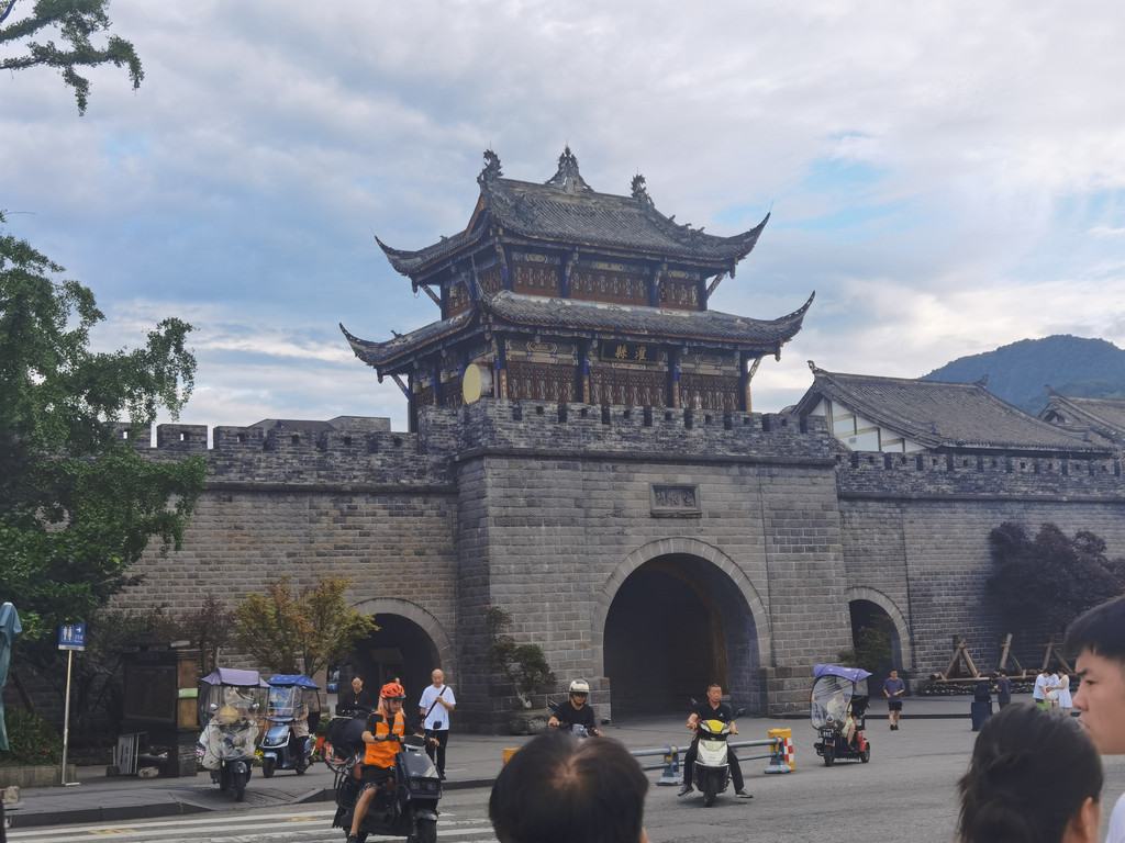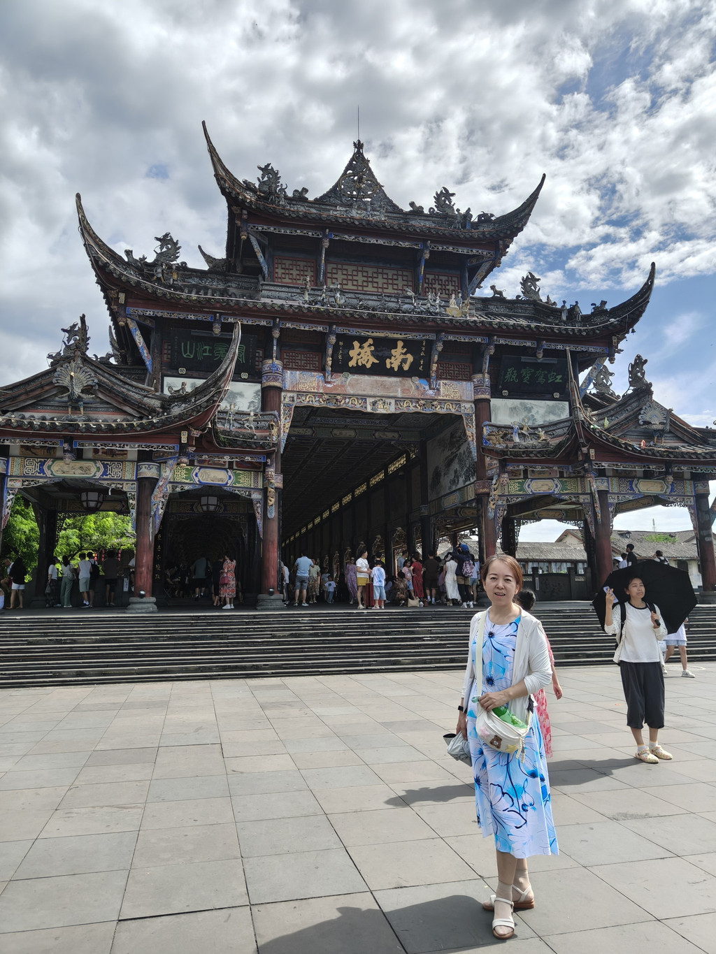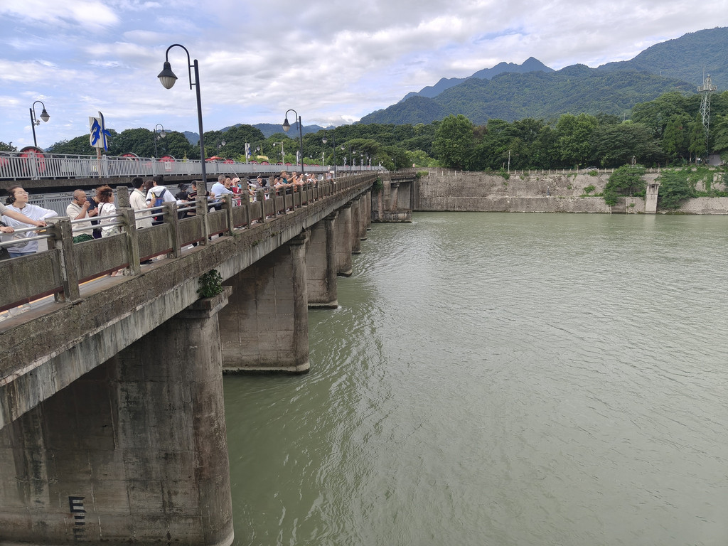 都江堰大门的右侧就是南桥,网红的南桥蓝眼泪就是在这里,不过需要晚上开灯后才能看到,这里天黑很晚,所以我们不打算看这个景色了。穿过南桥就是灌县古城,中午饭就在古城里解决。