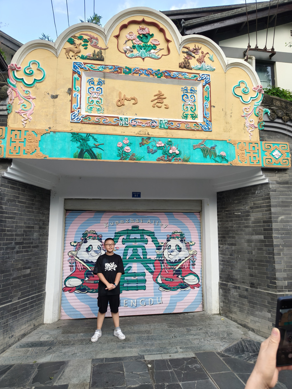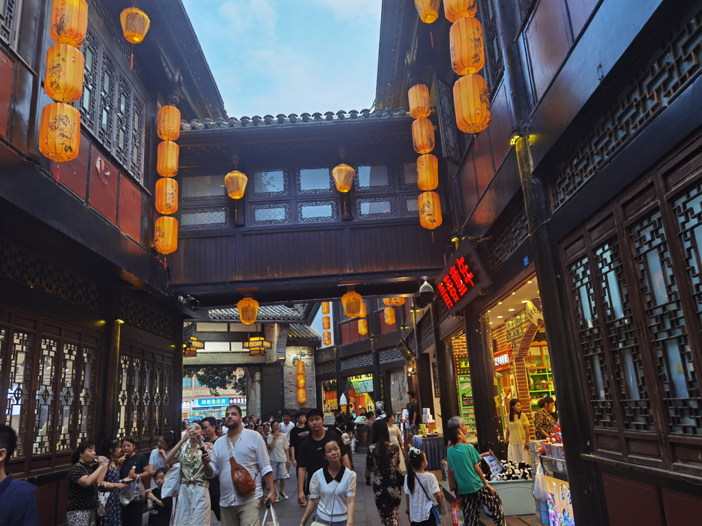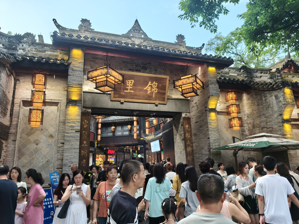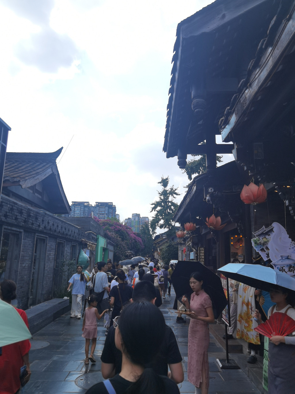 我们从武侯祠的后门出来的,出门就是锦里街区。这是现代修建的仿古建筑街区,我感觉就是基于武侯祠建设的一个旅游网红街。但这里的物价可比宽窄巷子便宜,小手办冰箱贴等都很便宜。