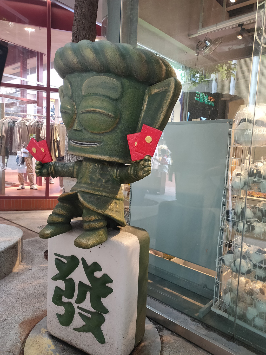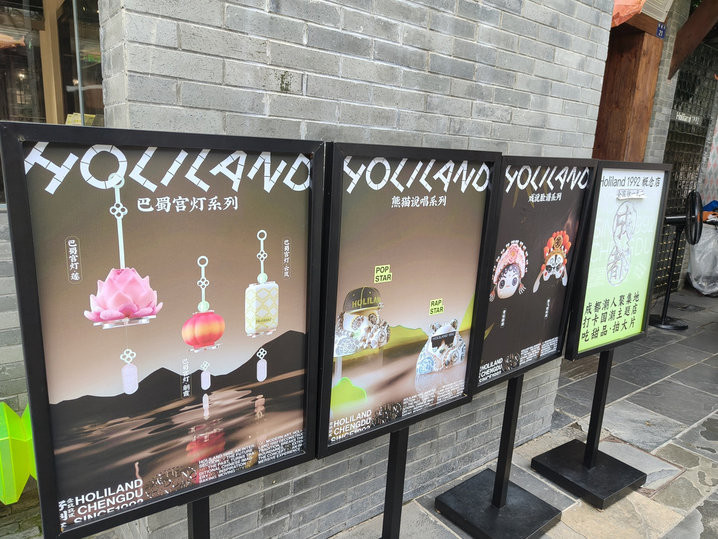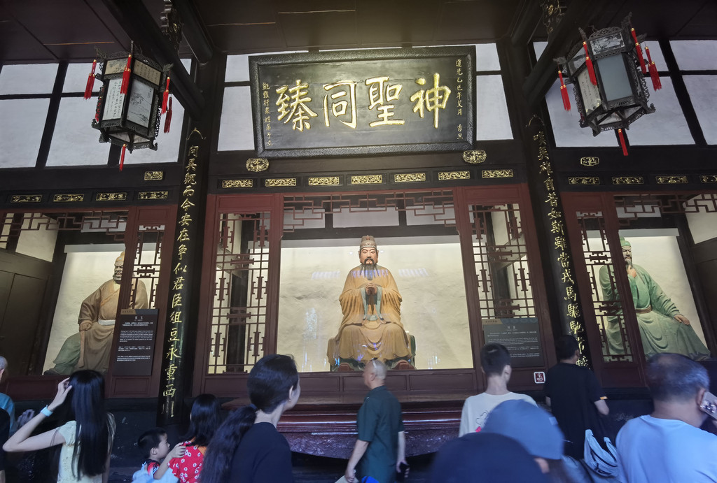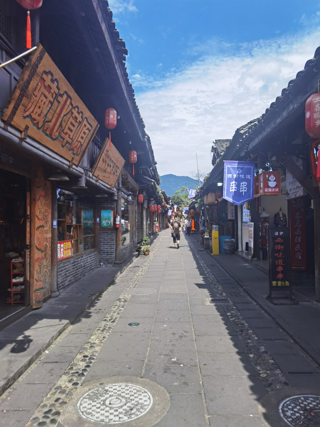 我们从武侯祠的后门出来的,出门就是锦里街区。这是现代修建的仿古建筑街区,我感觉就是基于武侯祠建设的一个旅游网红街。但这里的物价可比宽窄巷子便宜,小手办冰箱贴等都很便宜。