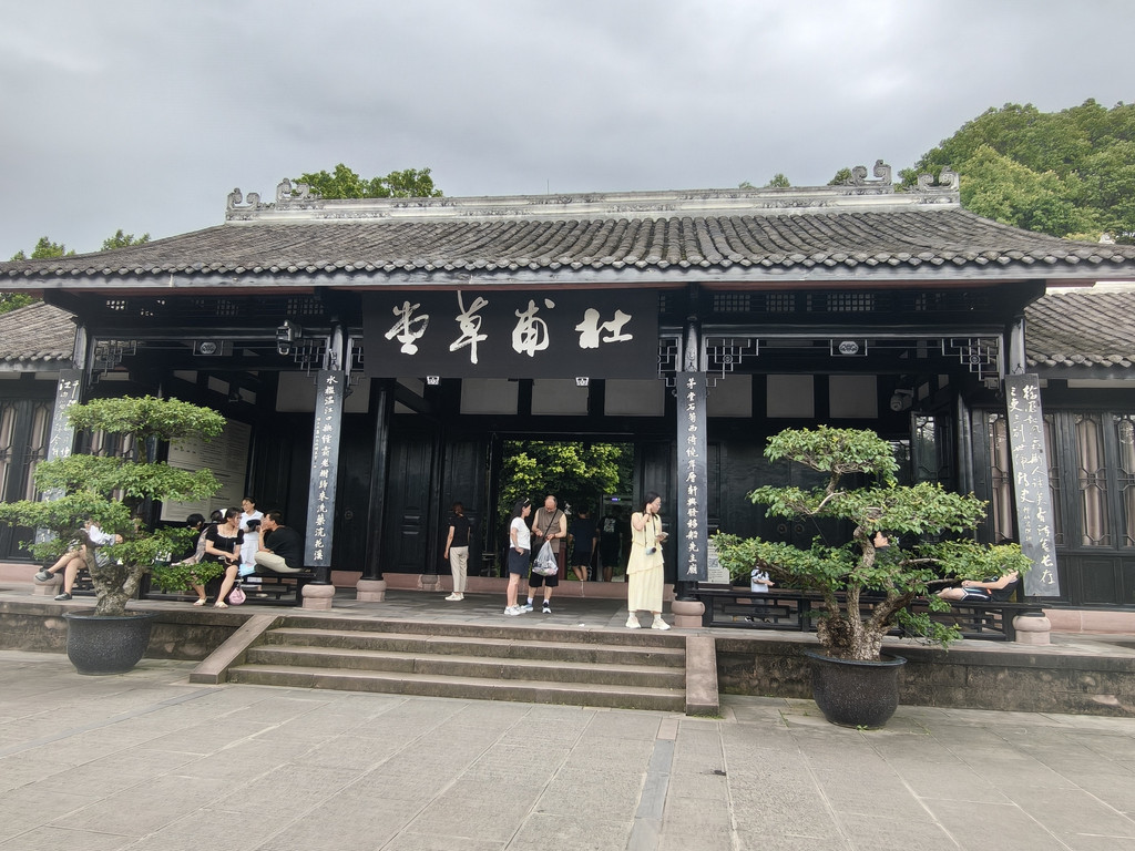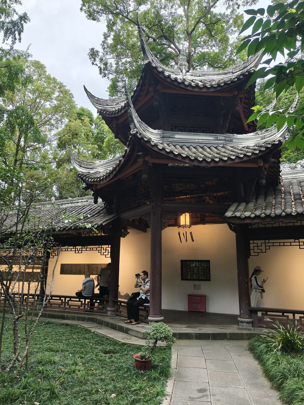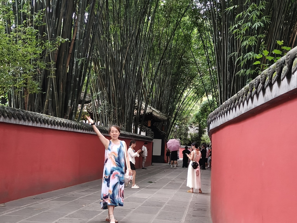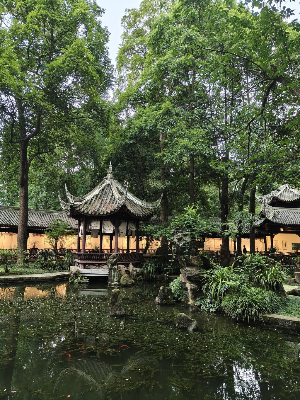 逛完蜀锦博物馆,扫了个共享单车,骑到了杜甫草堂,感觉这个景区建设的风景非常美,有点江南园林的感觉。