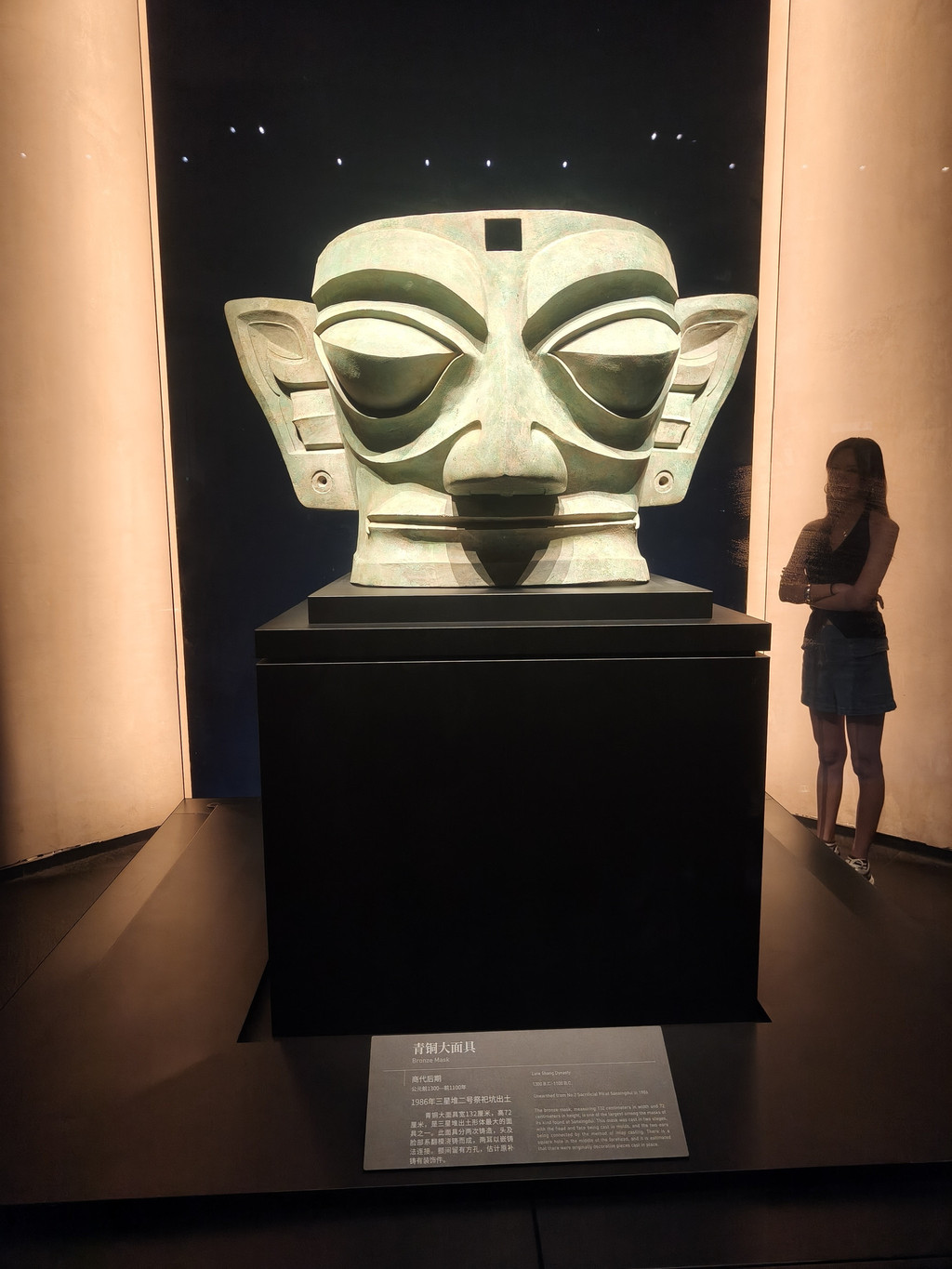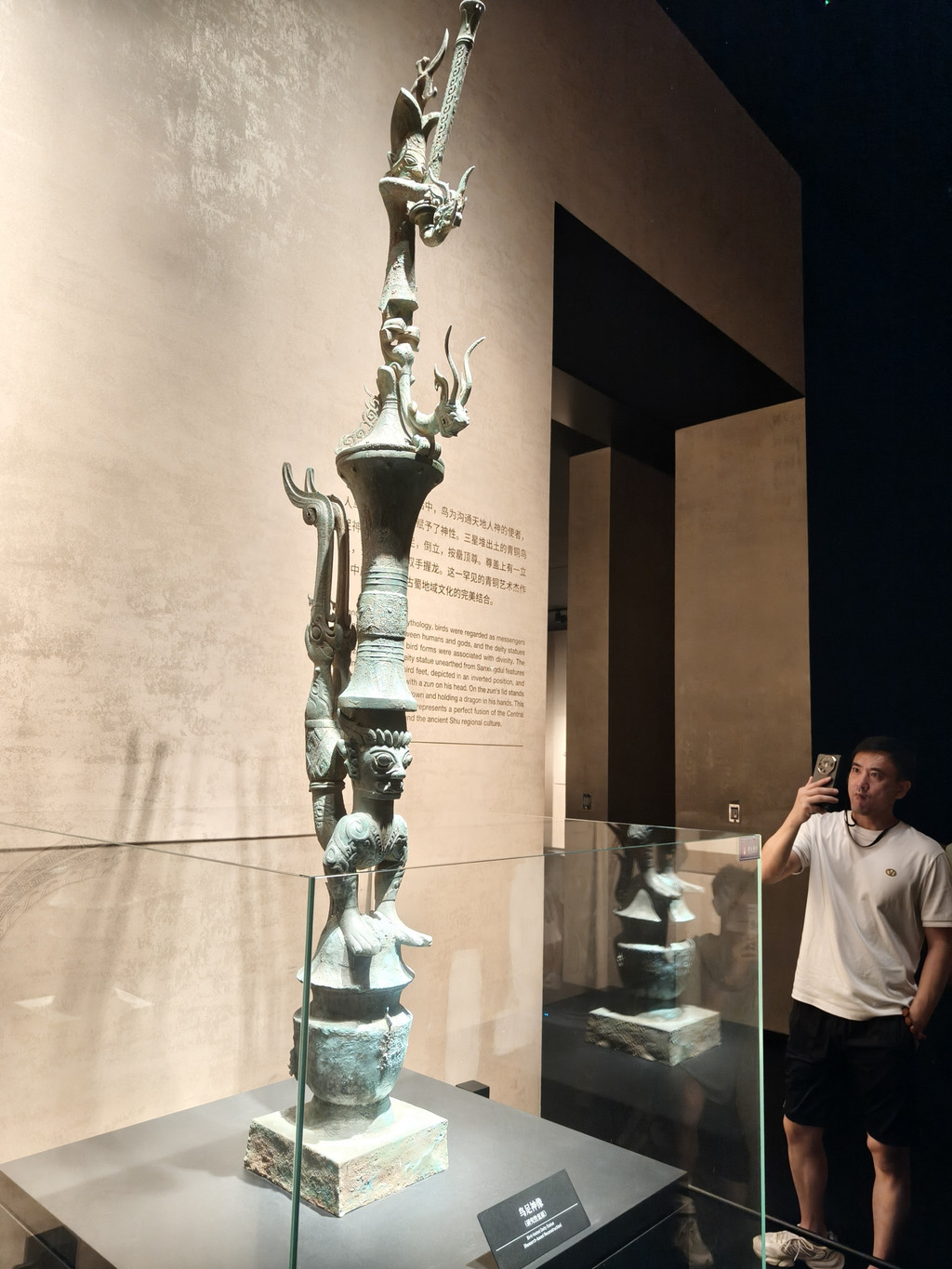 今天的主线任务:去三星堆,探寻一下文明的奇迹。三星堆博物馆在广汉境内,从成都出发可以选择高铁或者景区直通车,三星堆景区直通车在春熙路IFS熊猫爬墙的那个雕塑的下面,大巴车车程1个半小时,单程25元,往返45元。可以直达景区正门。