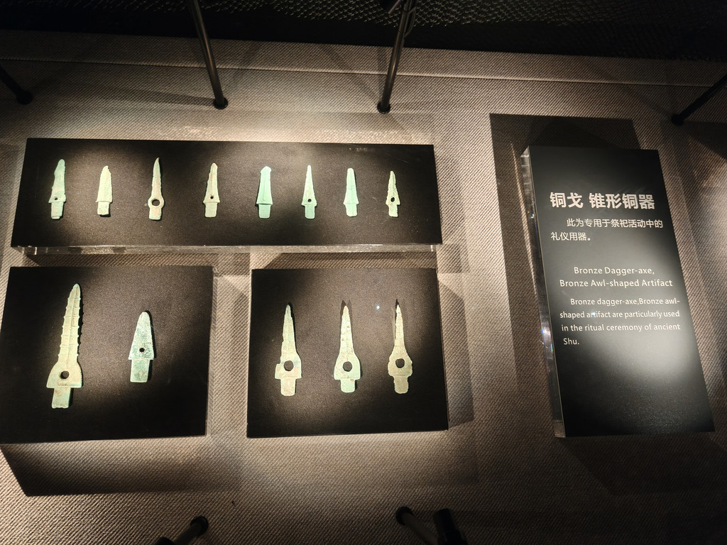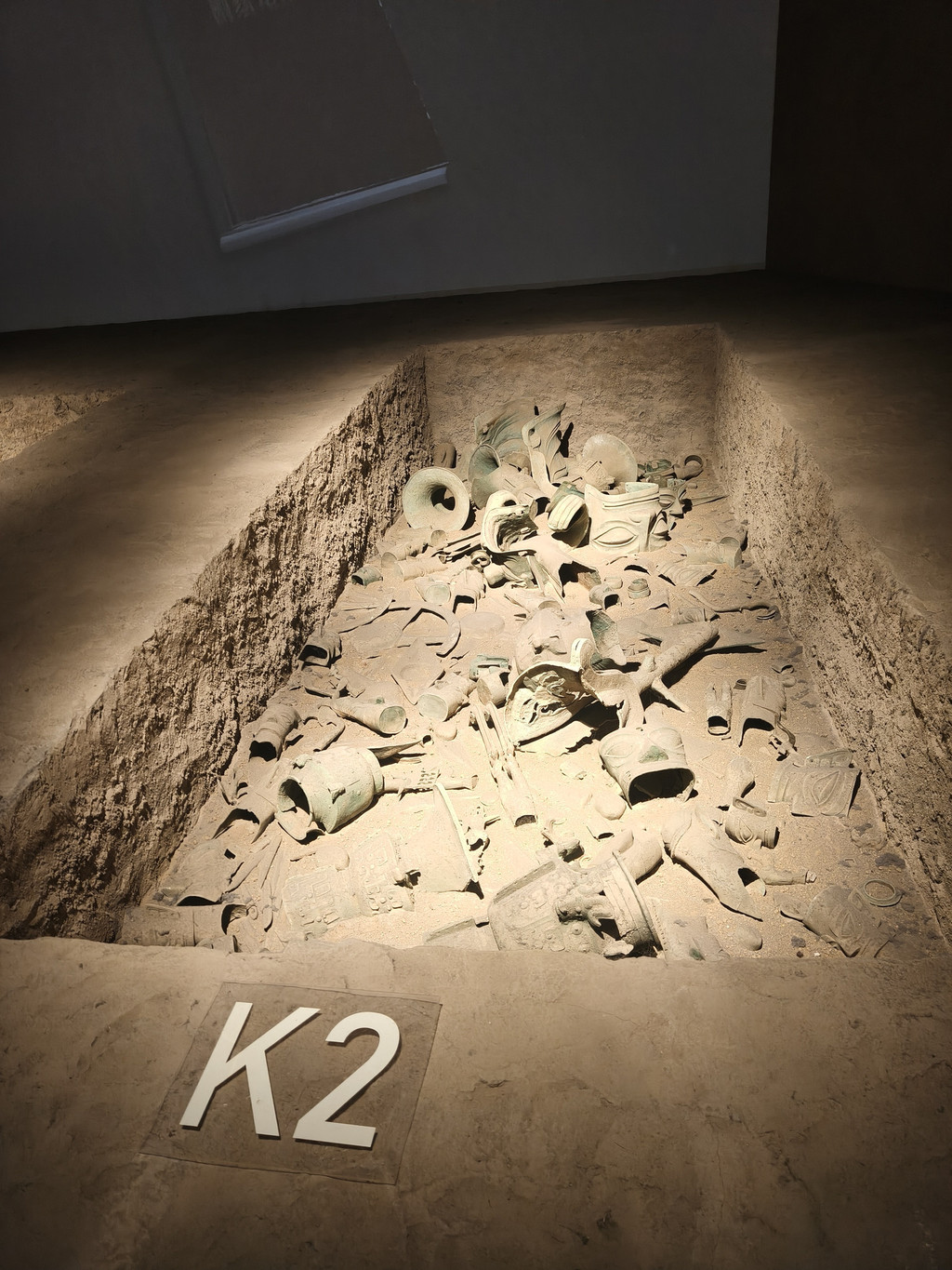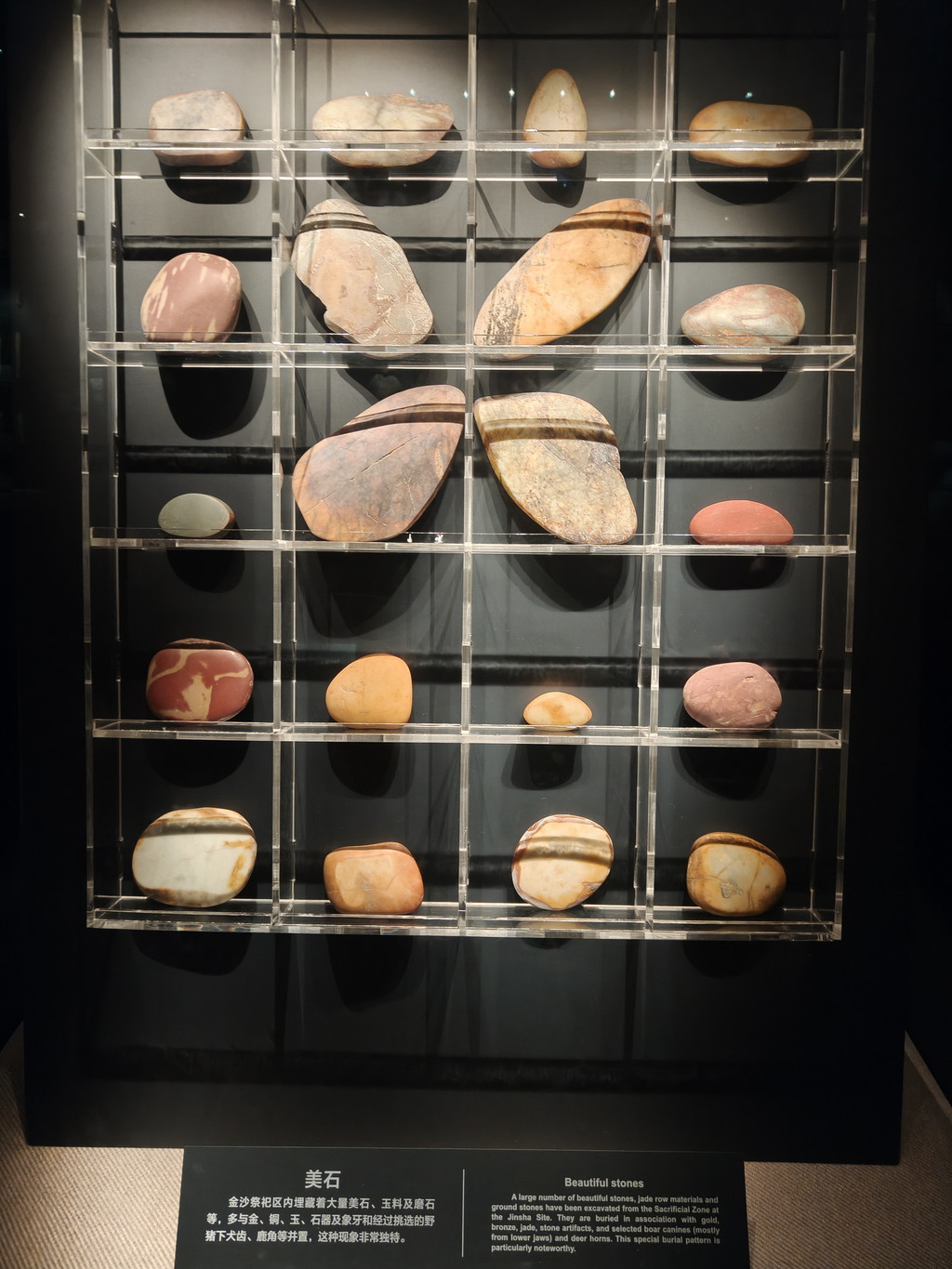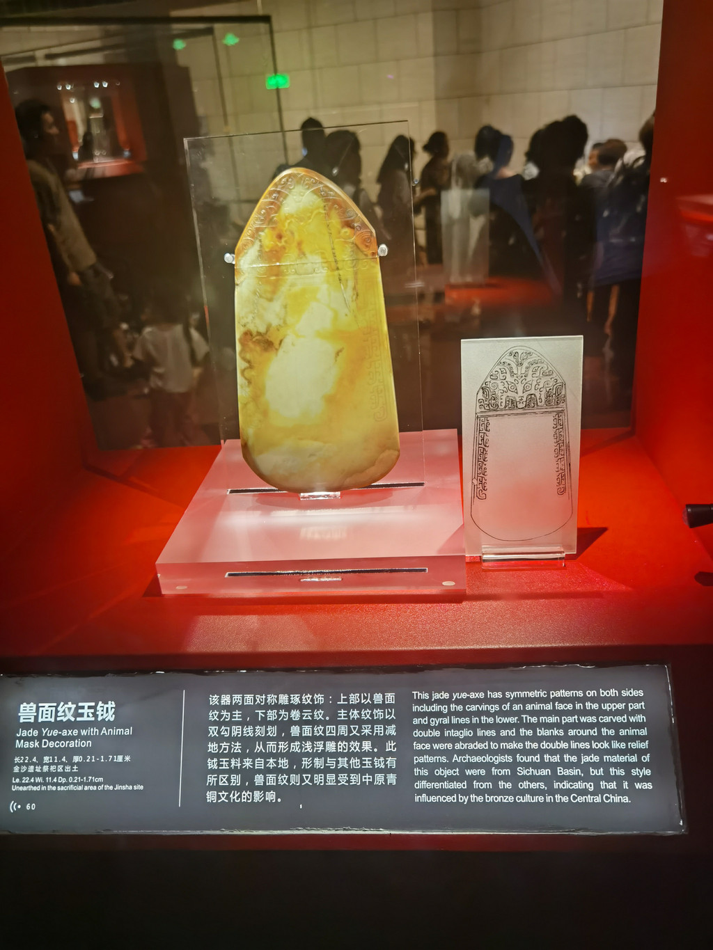 下面的照片是在金沙遗址博物馆中的陈列馆中的展品: