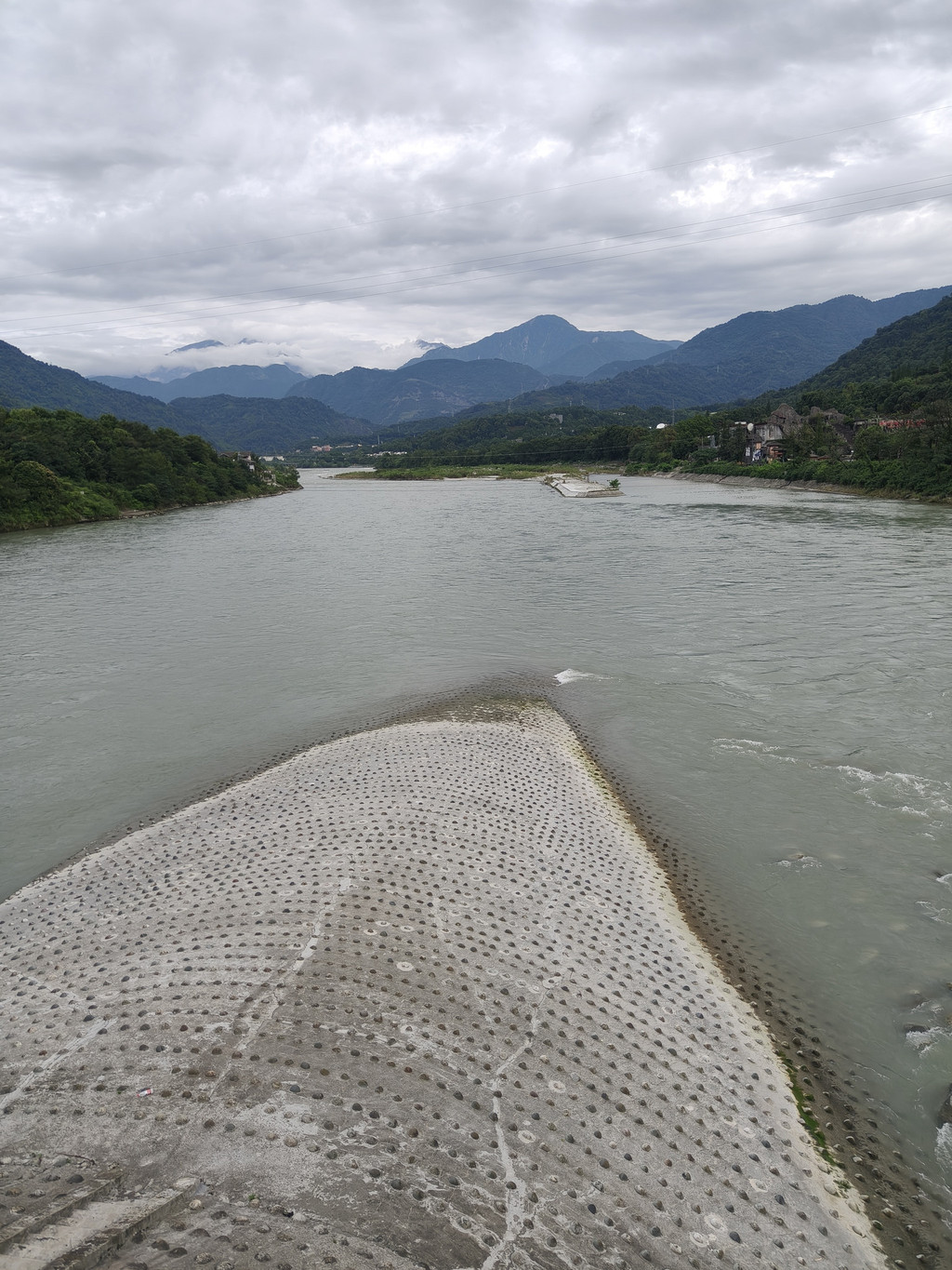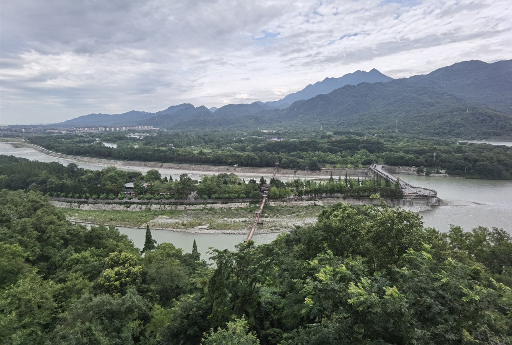 早上6点就起床了,在旅馆附近吃了个早餐,坐地铁到犀浦站,转高铁到离堆公园站(都江堰市),高铁半小时,票价10元。犀浦站不是普通的高铁站或者火车站,他相当于是一个城际高铁站,只有去都江堰和青城山的短途高铁,高铁车厢也跟普通高铁不同,更像是横排座椅版的地铁,一趟列车仅四节车厢。本来我买的是犀浦站至离堆公园的往返车票,到犀浦站才发现可以从青城山站直接回来,这样就不用再返回都江堰坐车了,所以退票重新买的返程票。离堆公园站靠近灌县古城和都江堰景区的入口,所以到都江堰景区游玩很方便。我们到这后选择从景区6号门进入,先俯瞰都江堰水利工程,再经过二王庙一路下行到鱼嘴近距离观赏都江堰。