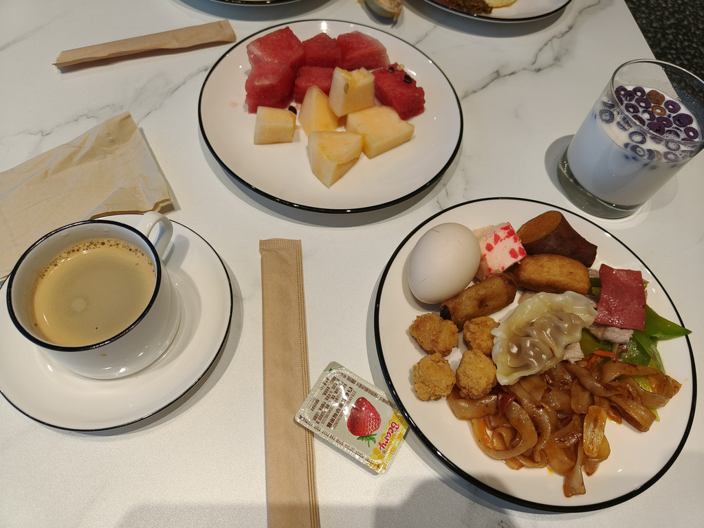 因为时间较晚,所以达到成都之后,没有选择直接去市区,而是在附近定了一家酒店,就近休息,有免费的机场接驳车接到酒店,选的是宜必思酒店,最大的优点是早餐品种丰富,第二天睡到自然醒,再吃饭出发去市区。