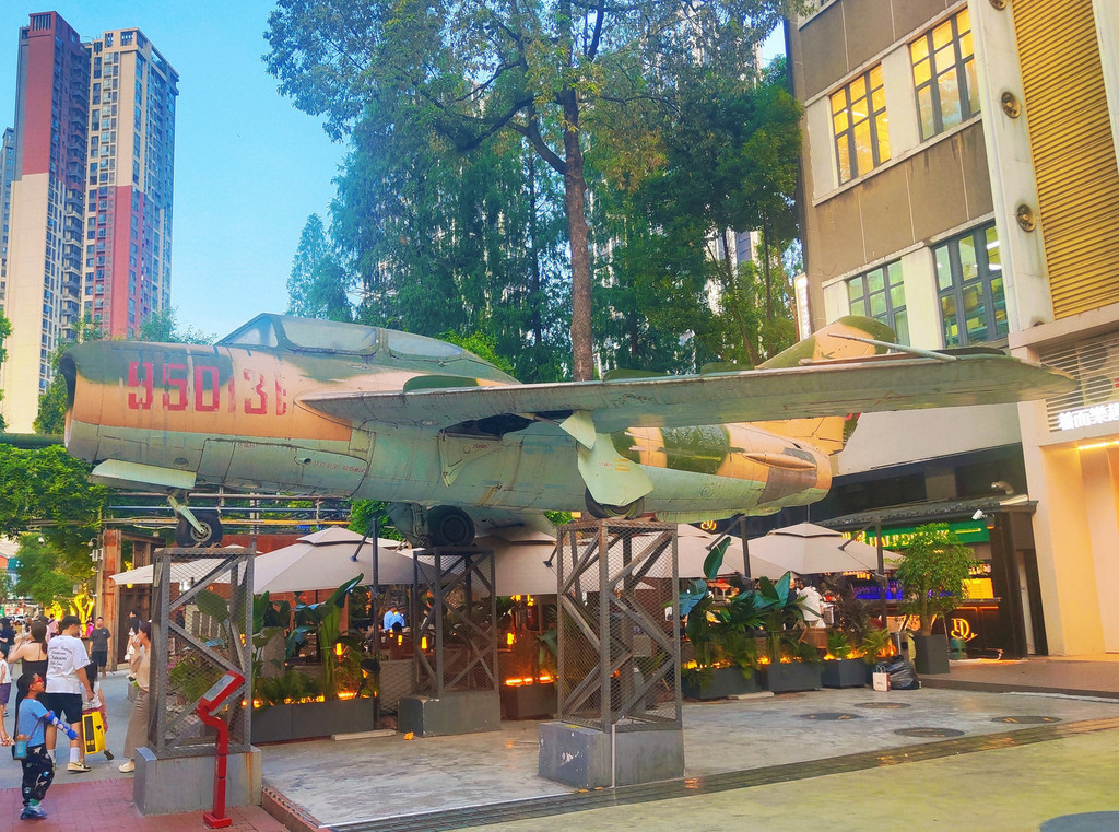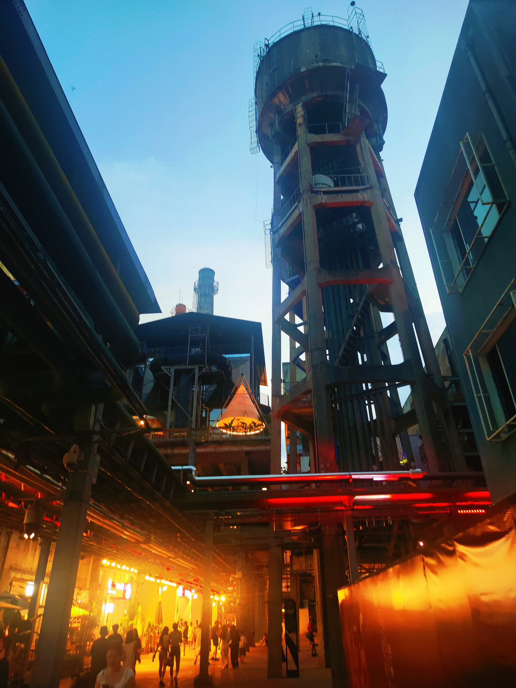到了傍晚时分,我们打车前往东郊记忆。东郊记忆,前身为成都红光电子管厂,1958年成立,由苏联援建,这里诞生了新中国第一支黑白显像管、第一支有电子工业“原子弹”之称的彩色显像管。红光厂最辉煌的时候,机器运作轰鸣声从早响到晚,运载卡车川流不息,一度享有“北有首钢,南有红光”美誉。这里从工业遗址变成了潮流圣地,见证了成都的变迁与发展,目前这里仍保留了苏式建筑风格和旧机床、罐体等工业遗存,还有东方红号1519蒸汽式火车、飞机模型等,并成为国家4A级文创园区。当工业风遇上赛博朋克,涂鸦墙与老厂房的碰撞,记忆长廊里的老照片展,让历史在当代艺术中重生。集装箱街区、光影艺术展、电竞空间构成Z世代的打卡宇宙。