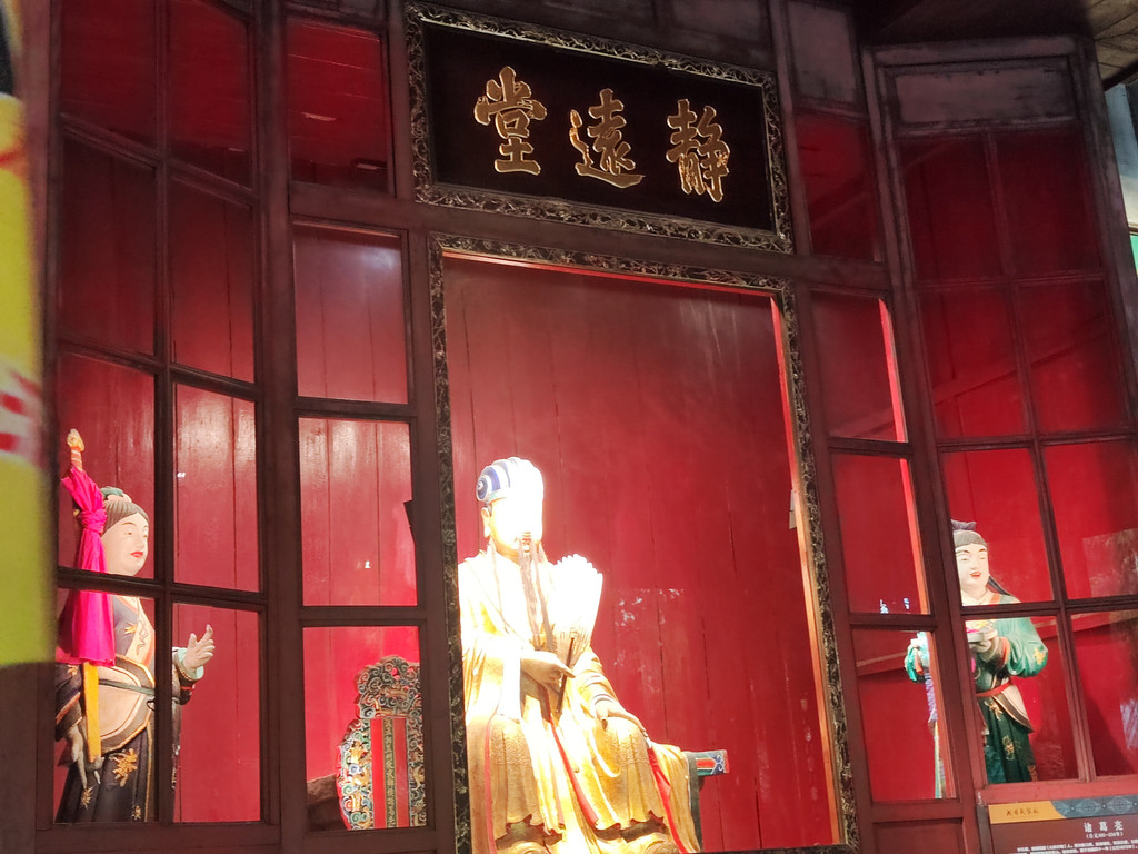 继续往前到了丞相祠堂,这里总共有6块匾额。正中的匾额是“名垂宇宙”,清康熙帝十七子果亲王爱新觉罗·允礼于雍正十二年甲寅(1734)仲冬书,寓意诸葛亮名满天下。右侧匾额是“勋高管乐”,诸葛亮年轻时曾自比管仲和乐毅,这两位都是古代著名的政治家和军事家。这个匾额赞扬诸葛亮的功勋堪比管仲和乐毅,由近代学者李镒题写。左侧匾额是“河岳英灵”,意味着诸葛亮是神州大地上杰出的英才,由清朝的完颜华毓撰写。里面还有“静远堂”,出自诸葛亮的名言“非淡泊无以明志,非宁静无以致远”,“匪皋则伊”、“伊周经济”则讲述赞扬了诸葛亮的治国能力与才干。