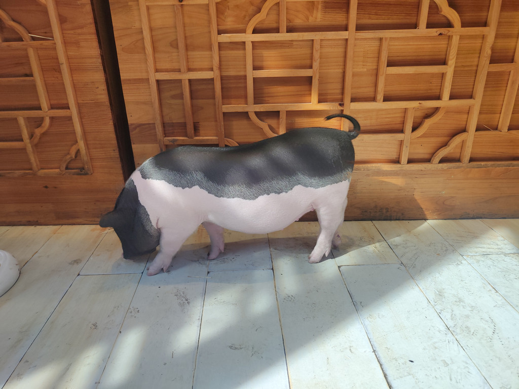 从二王庙出来,我们继续往下走到平地,从进入景区差不多也有1个小时左右了,此时导游的讲解已经完成,最后她还提到日本侵华期间曾经想轰炸都江堰水利工程,飞机盘旋很久也无法投弹,因为根本找不到轰炸目标的大坝,这也体现了都江堰工程的神奇之处。与导游分开后,我们沿着靠江的松茂古道往外走,走出景区后是一条古街,通向离堆公园附近,路两边有很多特产或小吃店,一些卖香料的吸引我们进去逛了逛,还见到一只滑稽可爱的宠物小猪。