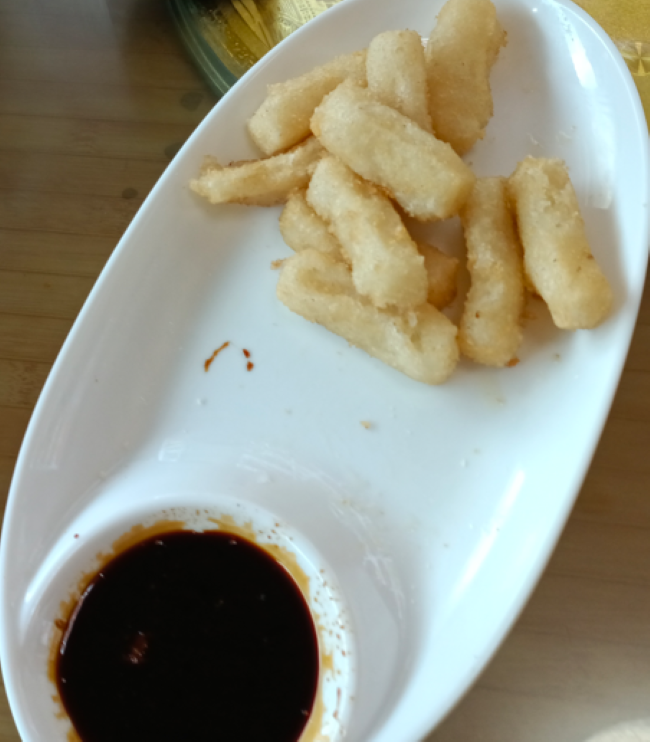 出了山区天气很热约35度,大约11:40到达龙湖成都西宸天街,休息吃午饭,兵哥豌豆面配旁边宫拉拉蒜香炸鸡非常合适,鸡柳半成品现场复炸加工,豌豆软糯鸡柳香脆。