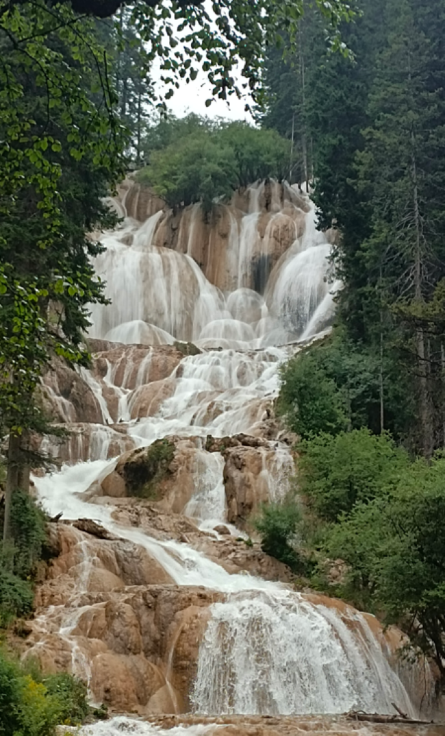 吸取昨天教训,穿上防水鞋,带好雨衣和雨伞,天公作美几乎没下雨。扎嘎瀑布景区也有钙化池,毕竟跟九寨沟是一伙的。瀑布看多了也就这样。