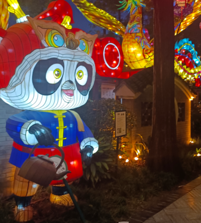 由于导游催促赶时间给力,回到成都衣冠庙地铁站附近大约18点,下车地点旁边有公厕。打车去人民公园旁的酒店,隔音很差。放好行李后走路去人民公园旁的钟水饺吃晚饭,由于前面四顿团餐都很糟糕,反衬钟水饺精致美味。人民公园有熊猫灯饰。